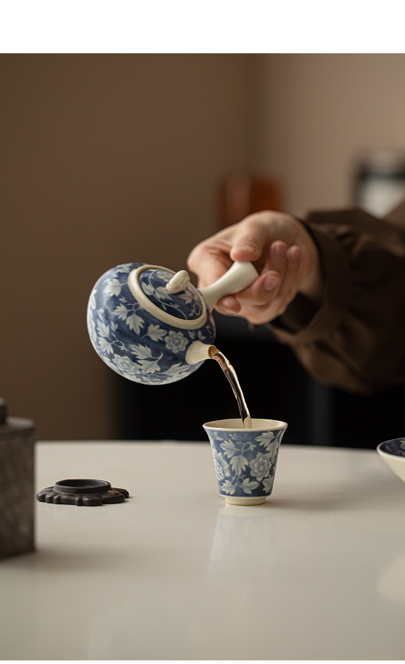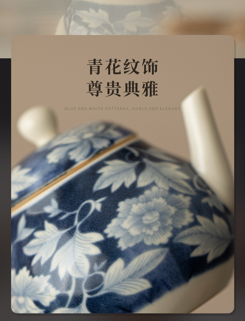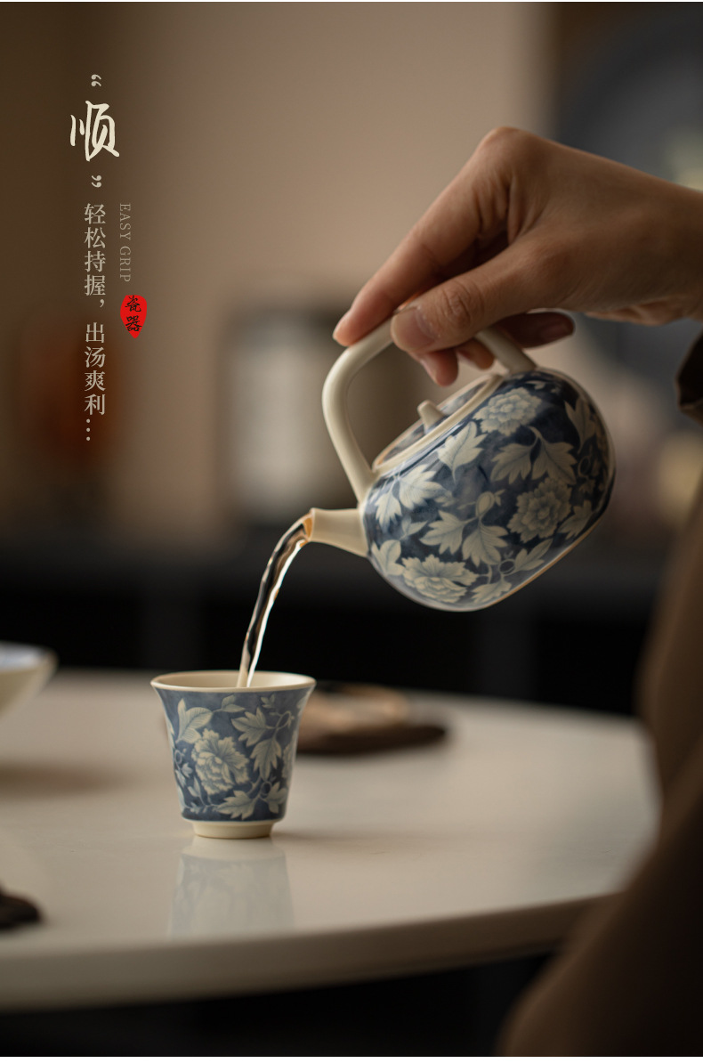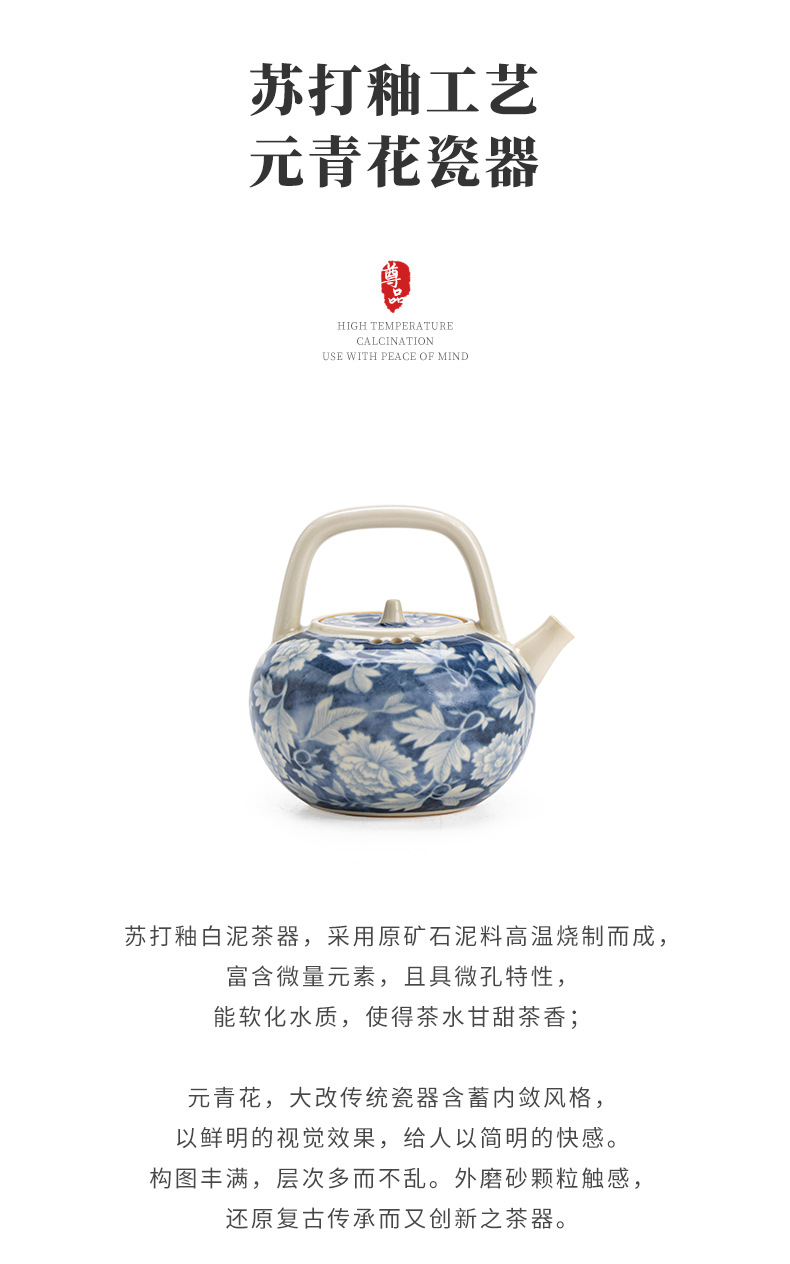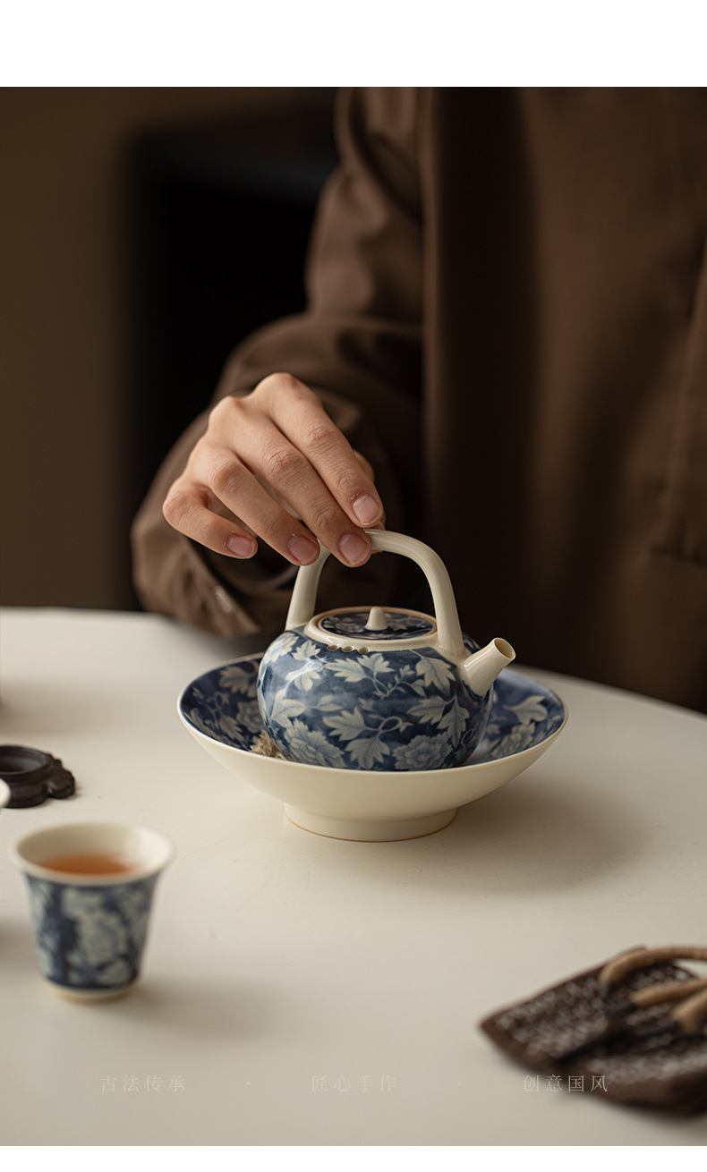 Ấm pha trà màu xanh và trắng tráng men soda, ấm đơn bằng sứ, ấm tay cầm, ấm tay cầm, ấm giọt nước, bộ trà Kung Fu