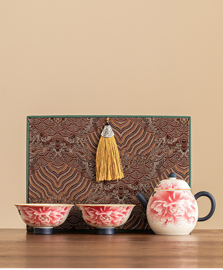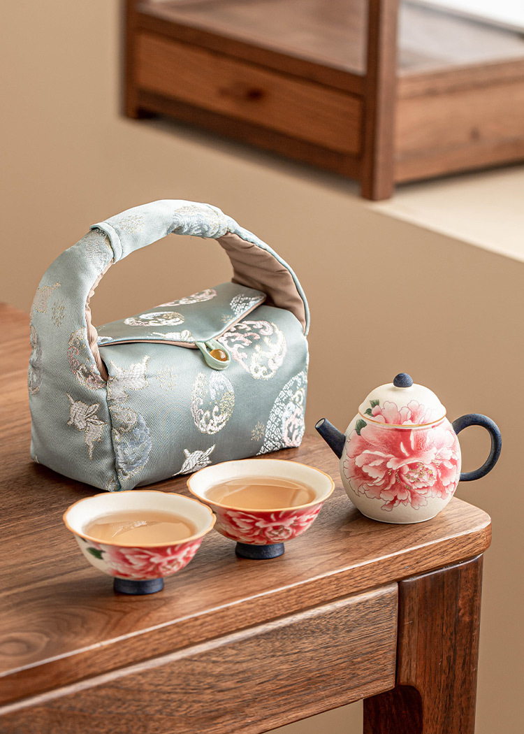 - Ấm pha trà trắng mỏ đá, cốc trà, một ấm hai cốc gốm sứ, bộ nhỏ, hoa mẫu đơn sơn vàng, bộ trà du lịch ngoài trời di động