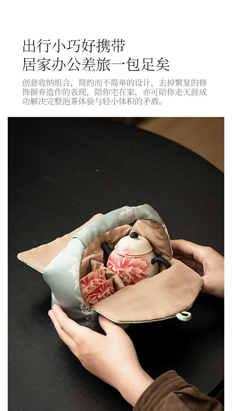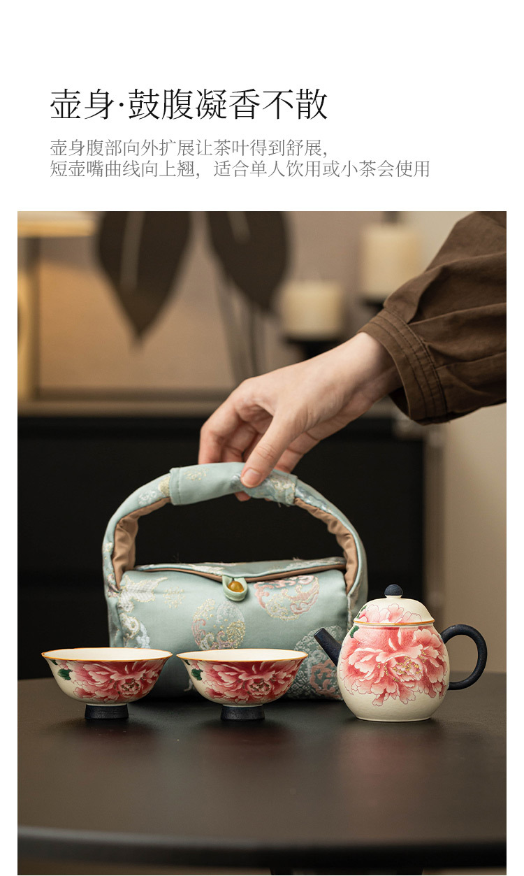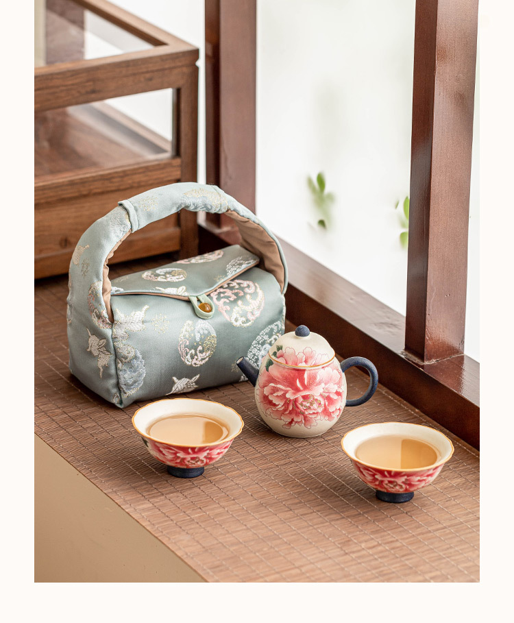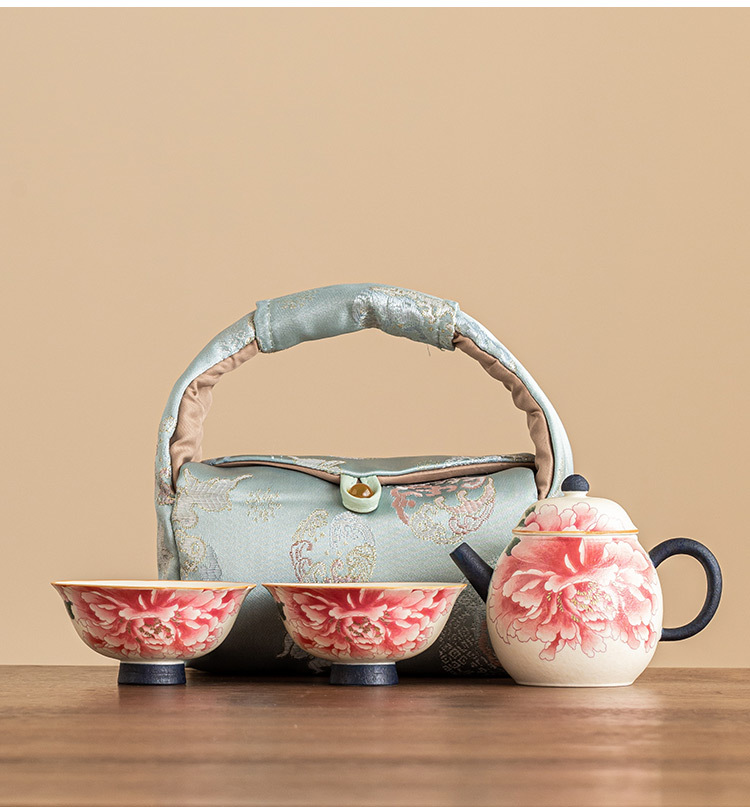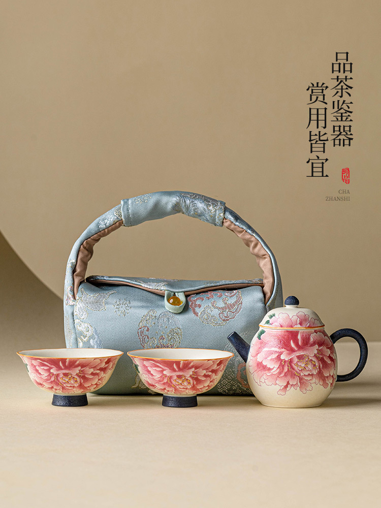 Ấm pha trà trắng mỏ đá, cốc trà, một ấm hai cốc gốm sứ, bộ nhỏ, hoa mẫu đơn sơn vàng, bộ trà du lịch ngoài trời di động