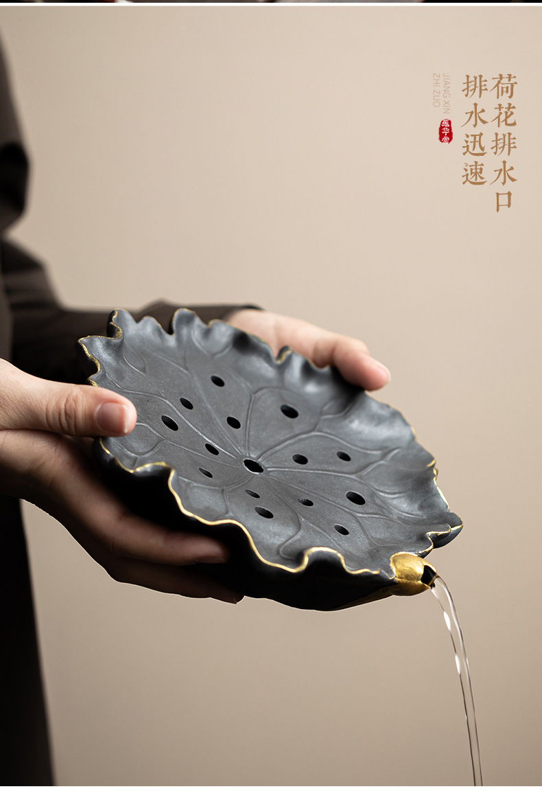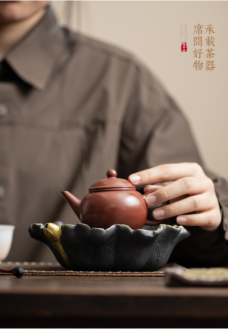Ấm sen bùn đá cũ, khay đựng trà bằng gốm sứ sáng tạo, khay đựng trà, khay đựng trà, khay đựng trà, bộ trà Kung Fu