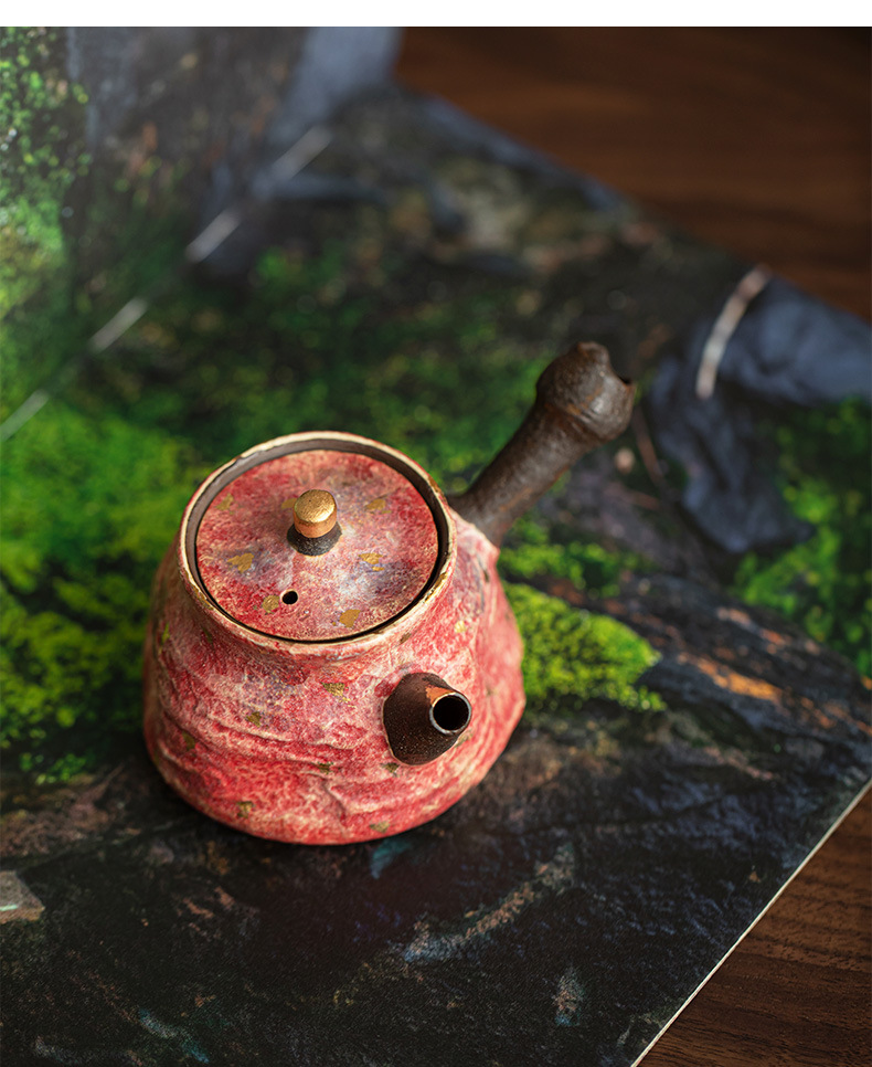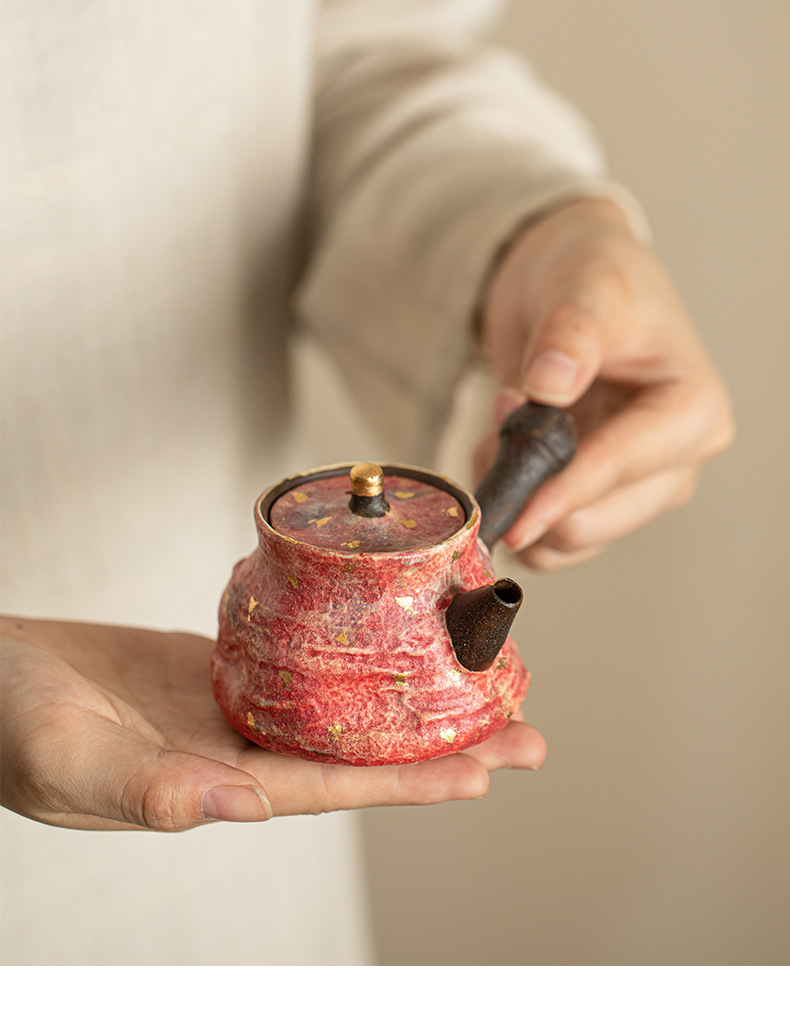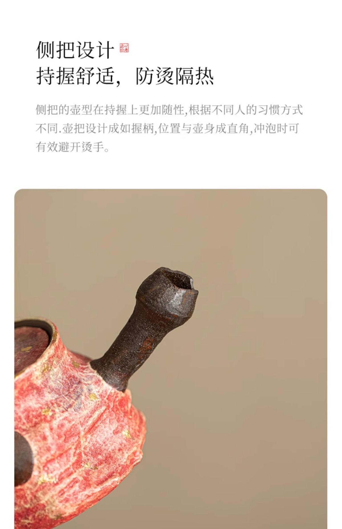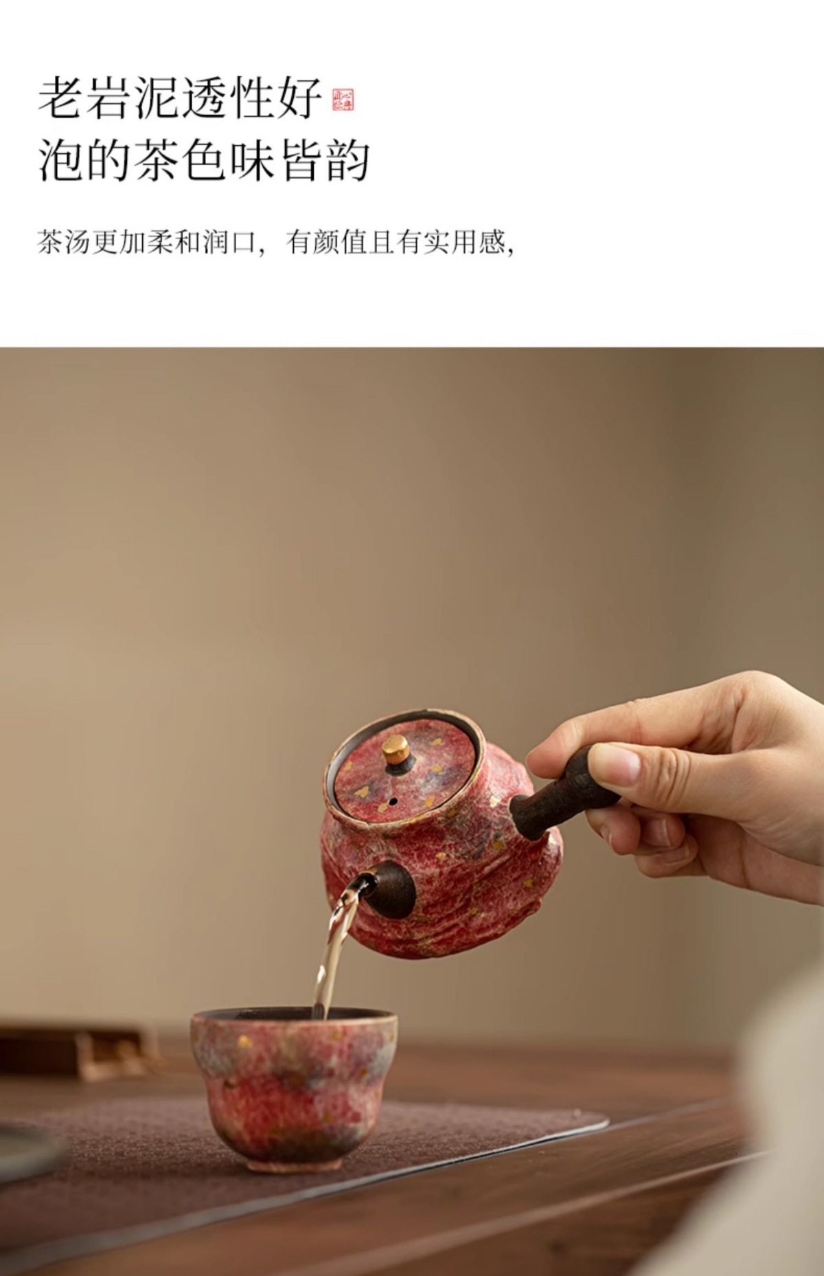 - Ấm tay cầm bên đỏ sặc sỡ gốm đá mỏ ấm gốm Trung Quốc cổ điển bộ trà Kung Fu một người Shiye ấm pha trà gia dụng