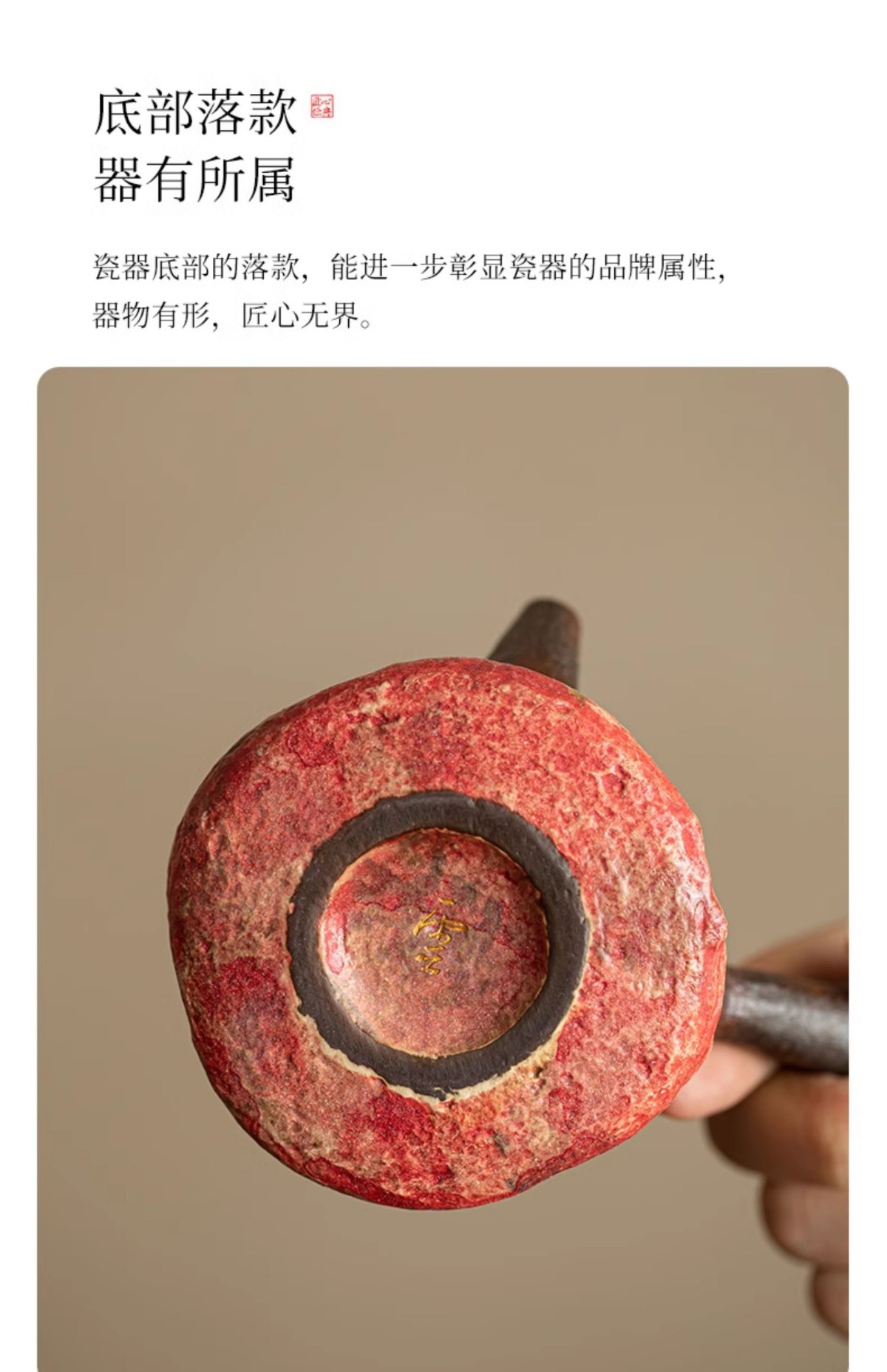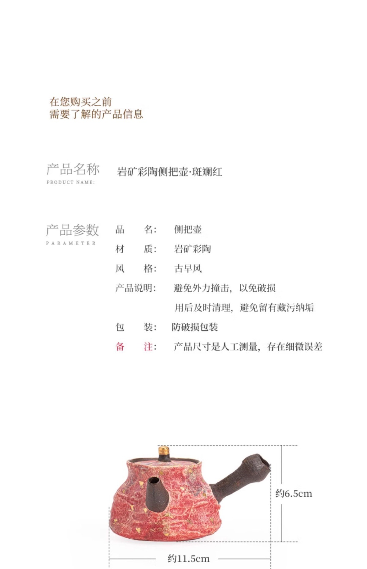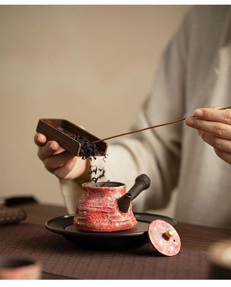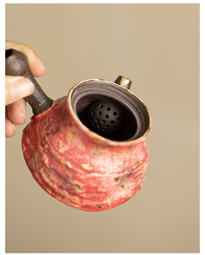 - Ấm tay cầm bên đỏ sặc sỡ gốm đá mỏ ấm gốm Trung Quốc cổ điển bộ trà Kung Fu một người Shiye ấm pha trà gia dụng