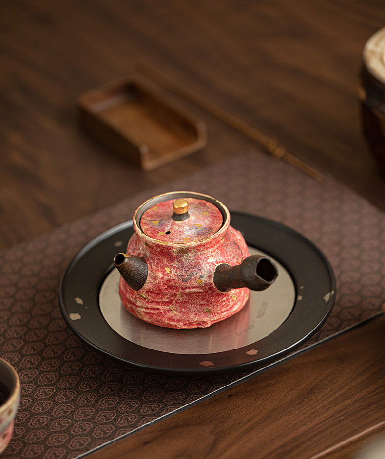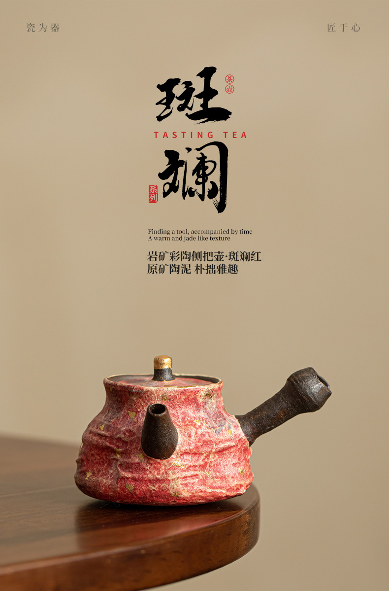 Ấm tay cầm bên đỏ sặc sỡ gốm đá mỏ ấm gốm Trung Quốc cổ điển bộ trà Kung Fu một người Shiye ấm pha trà gia dụng