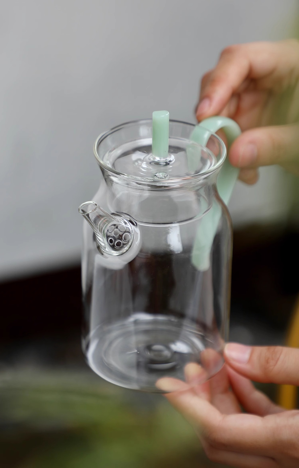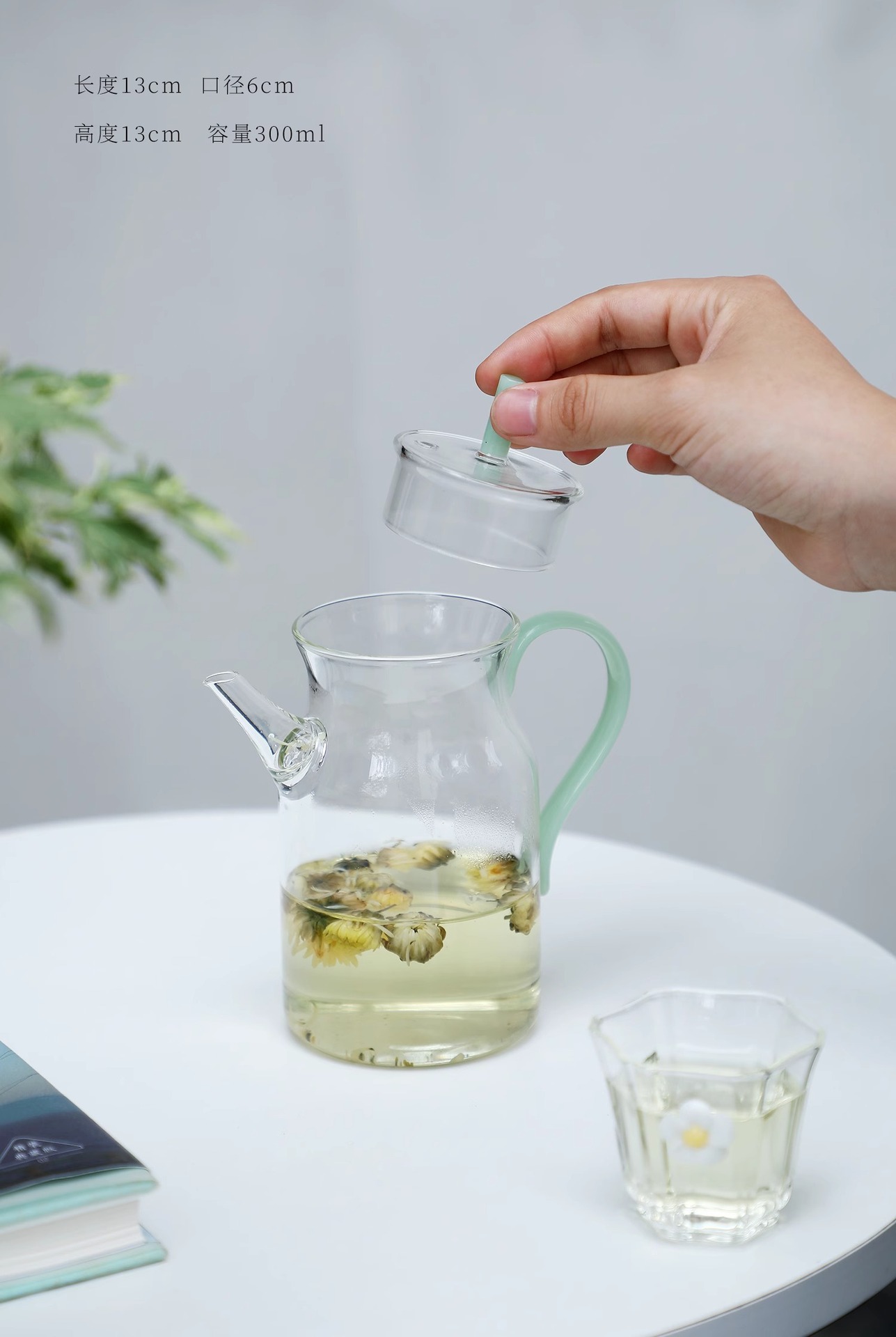 - Ấm tay thủy tinh chịu nhiệt độ cao kiểu Nhật ấm trà xanh thủy tinh dày có nắp ấm pha trà