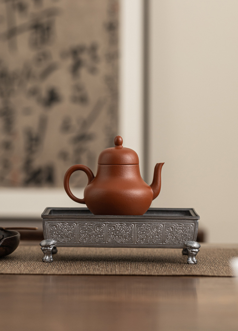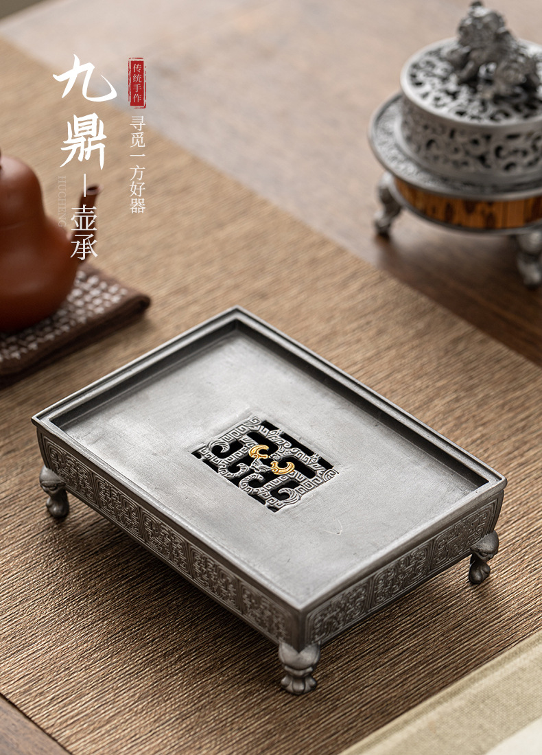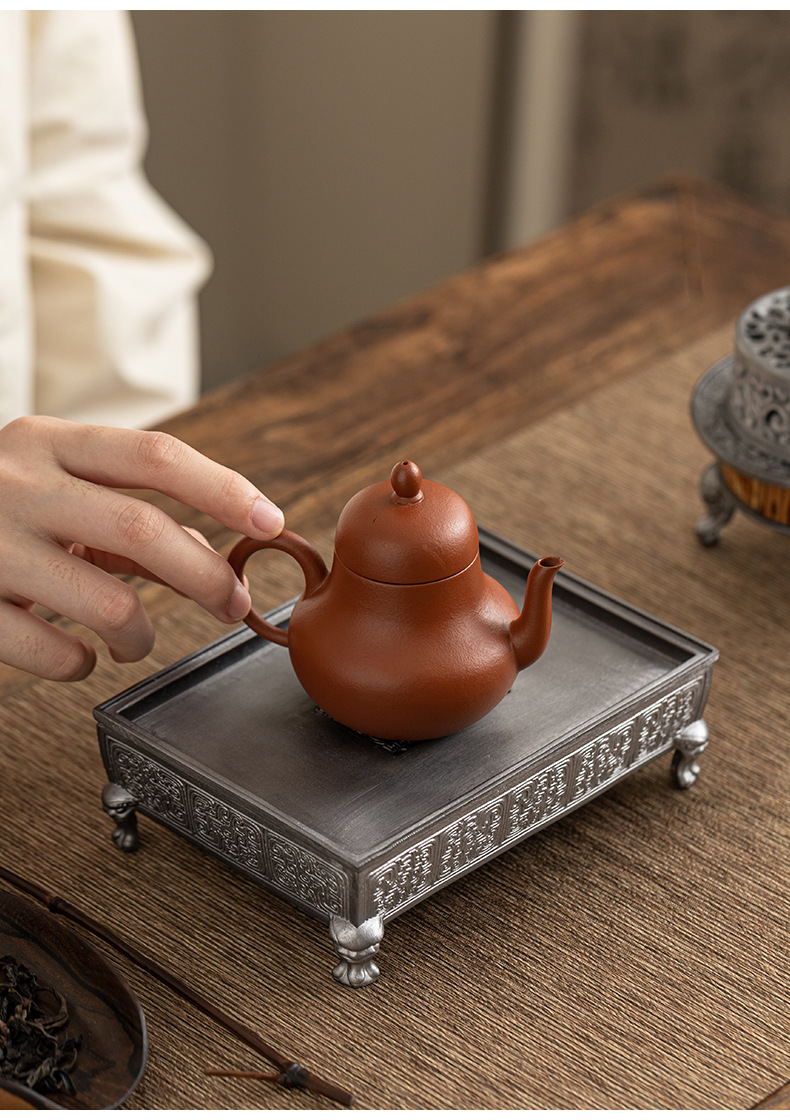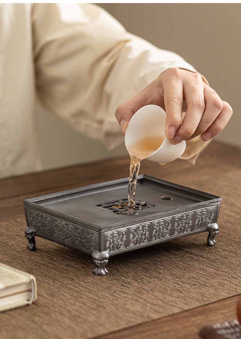 - Ấm thiếc cũ mang phong cách Trung Quốc xây nước giả cổ Bộ ấm trà Kung Fu cũ Khay trà bàn ủ khô bàn nâng ấm trà khay đựng nước