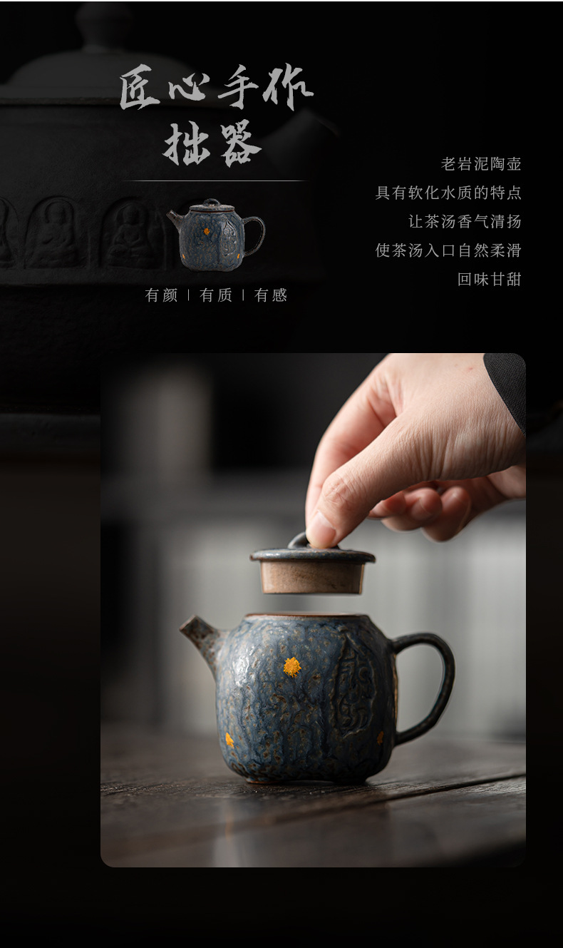 - Ấm Thiền bùn đá lâu đời Trống rỗng Zhai ấm trà Kung Fu cổ điển Bộ trà gia dụng bằng đồng có thể nâng cao để pha trà cao cấp