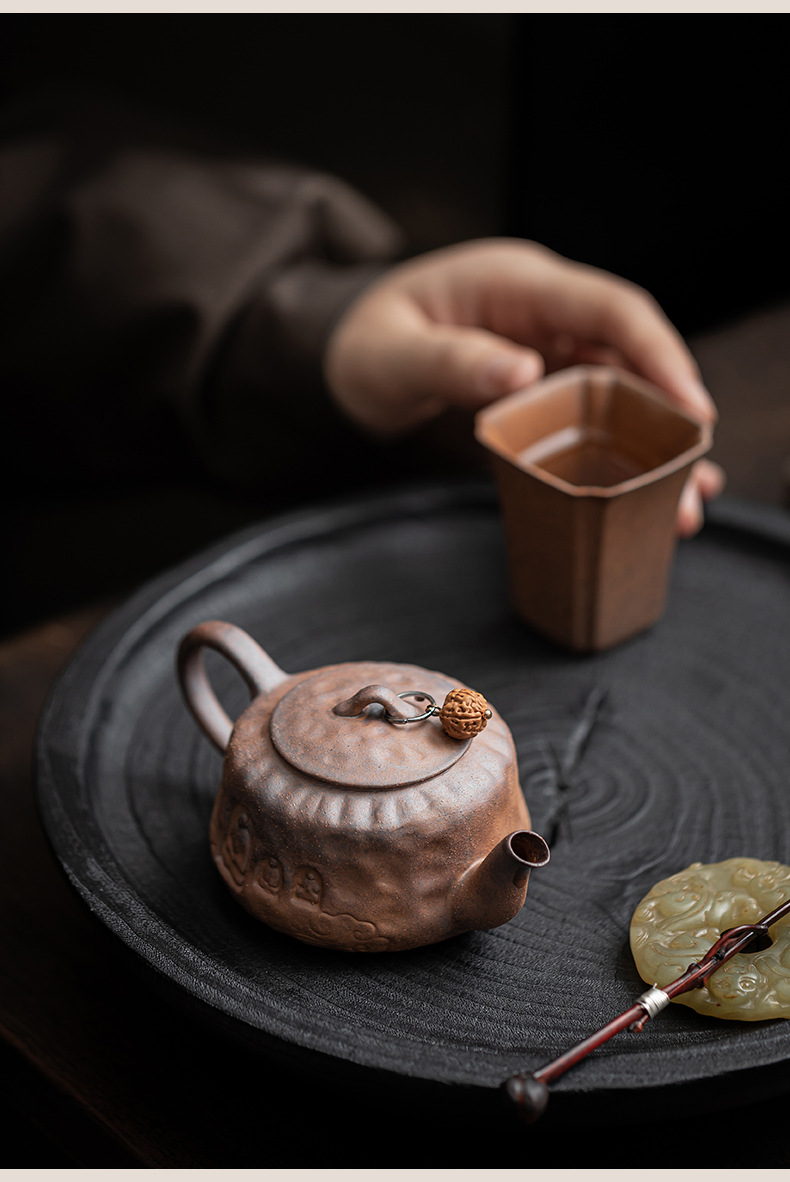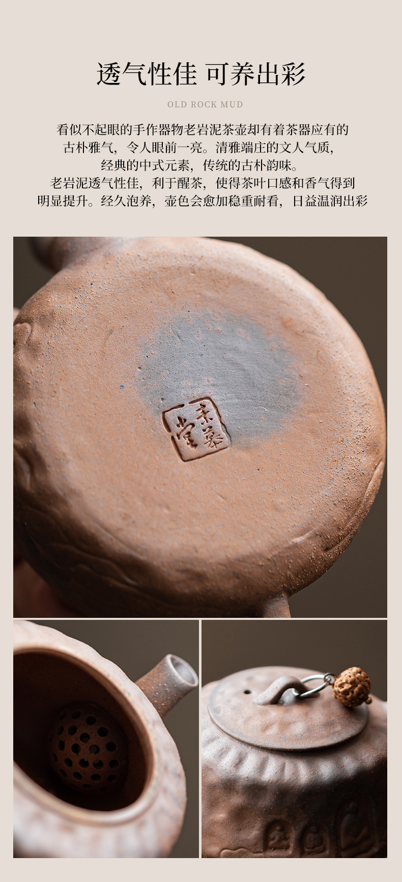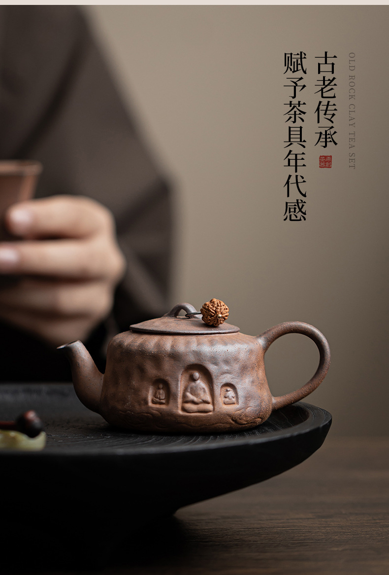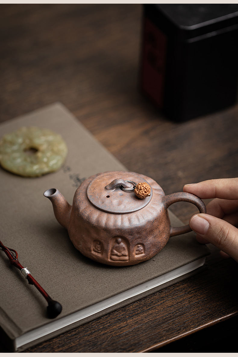 - Ấm thiền Đôn Hoàng bùn đá cũ dụng cụ pha trà kungfu cổ điển gia dụng ấm pha trà đơn ấm lọc lỗ bóng gốm thô kiểu Trung Quốc