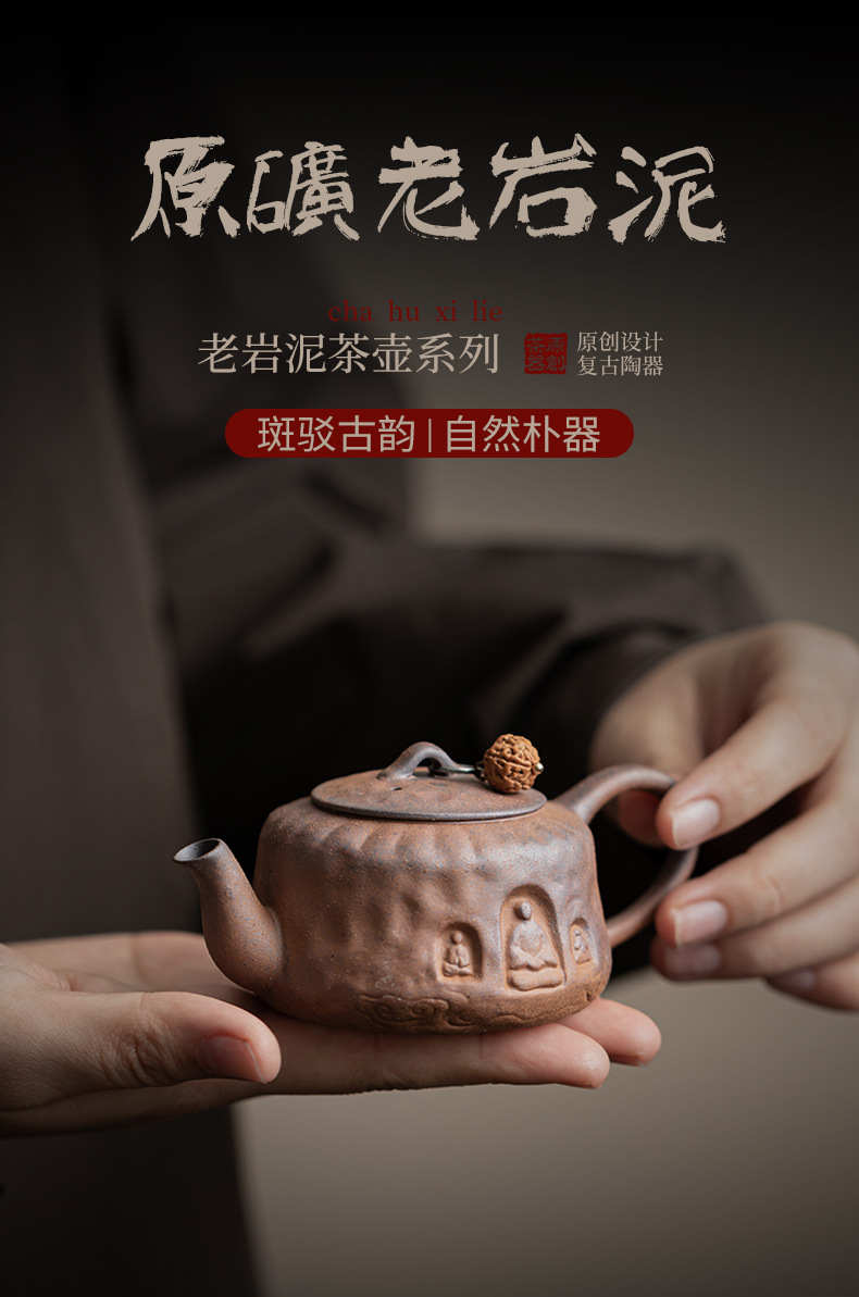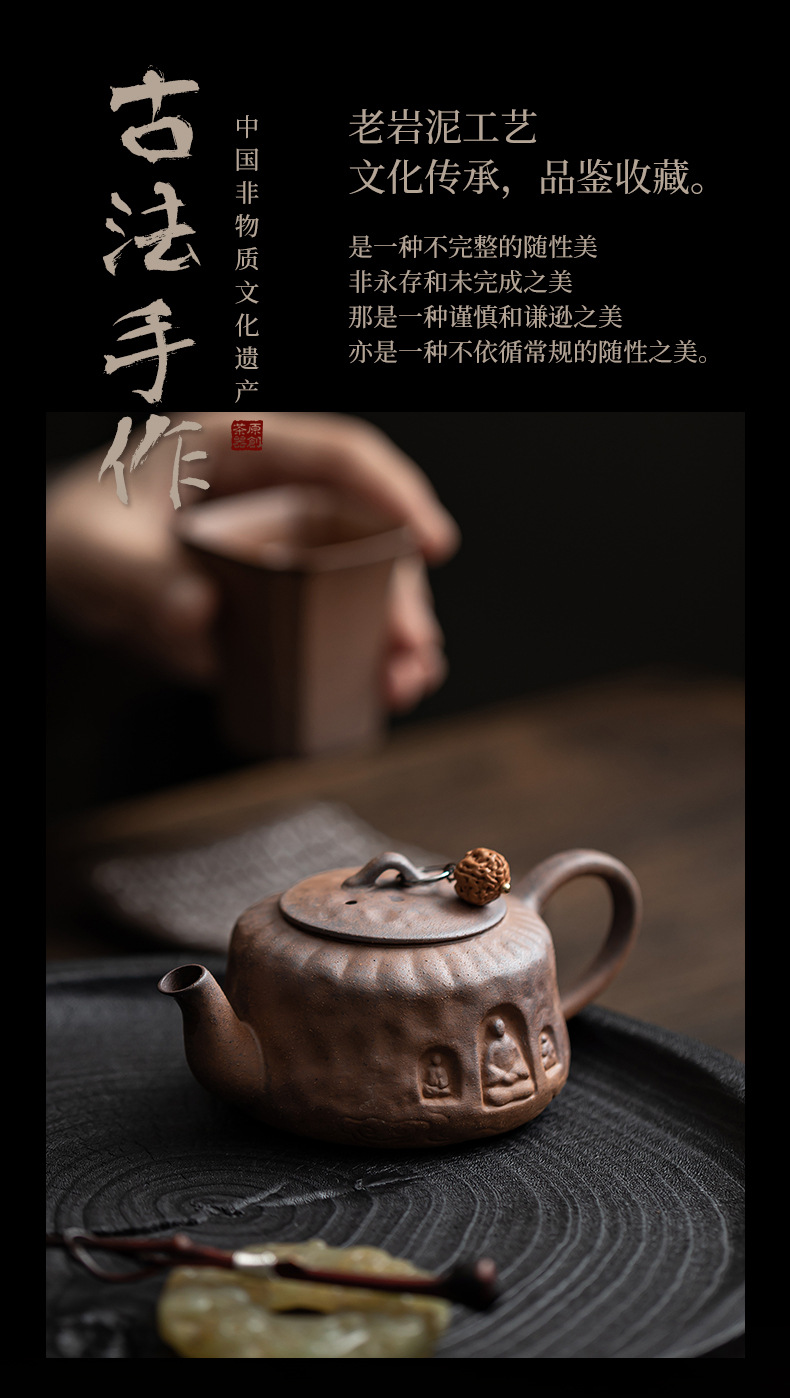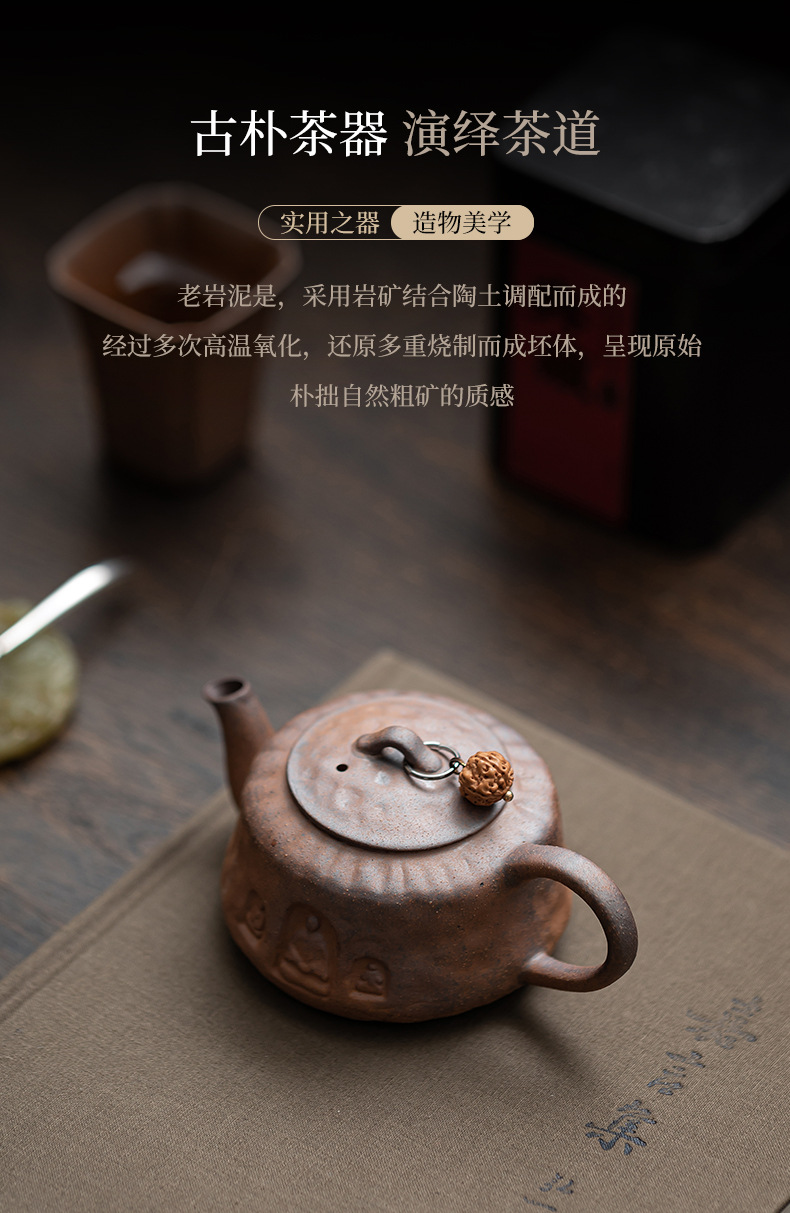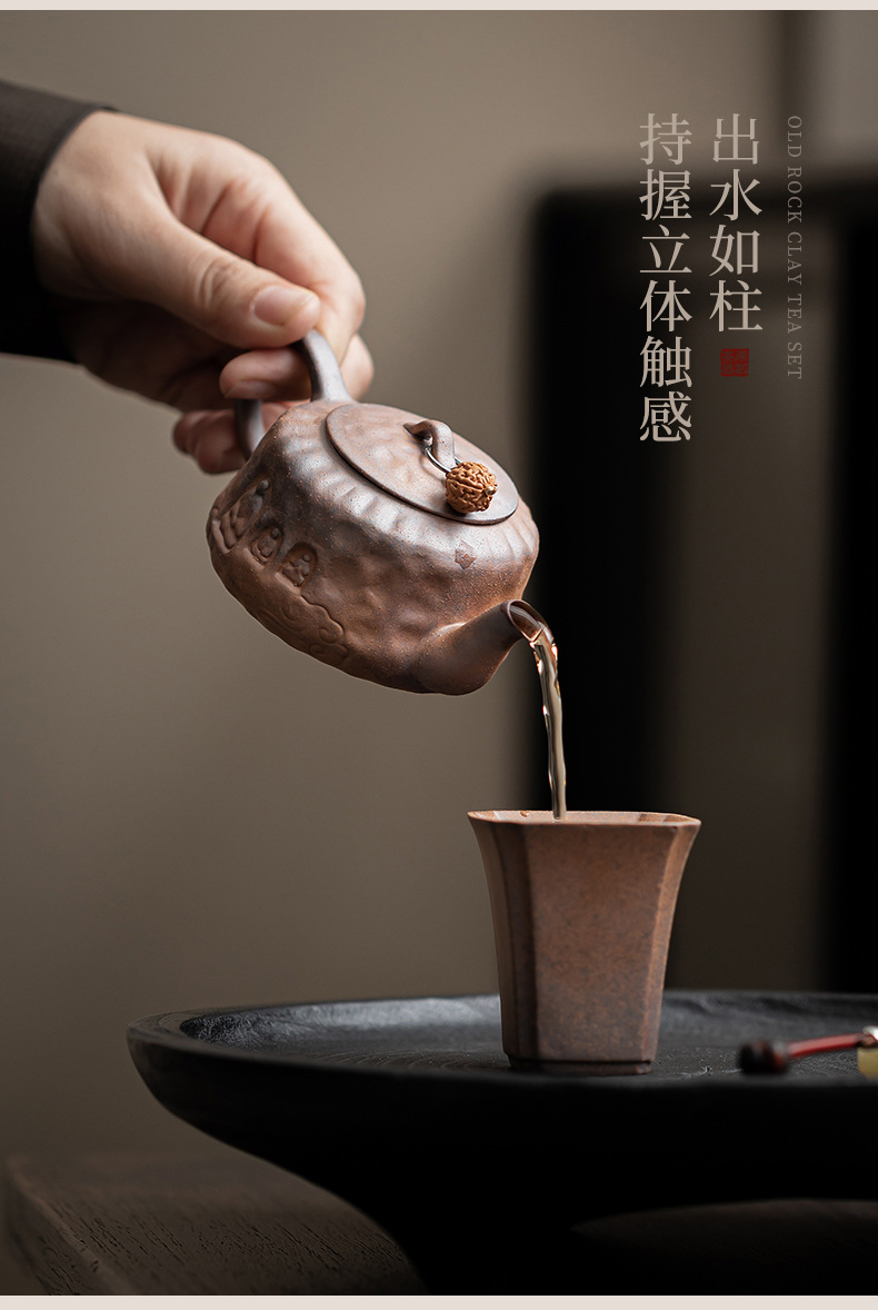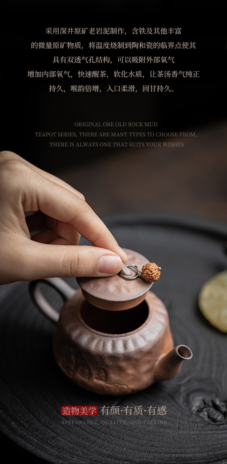 - Ấm thiền Đôn Hoàng bùn đá cũ dụng cụ pha trà kungfu cổ điển gia dụng ấm pha trà đơn ấm lọc lỗ bóng gốm thô kiểu Trung Quốc