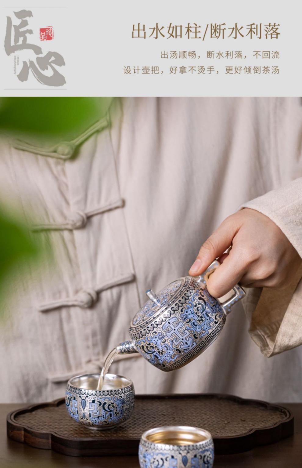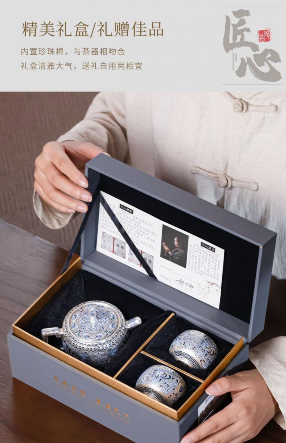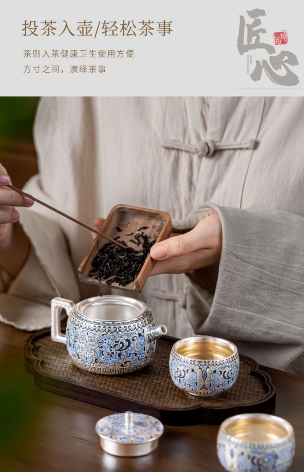 Ấm trà bạc phong cách Trung Quốc, tách trà, quà tặng cầm tay, bộ trà kung fu mạ bạc cổ điển vàng bạc sáng tạo cao cấp