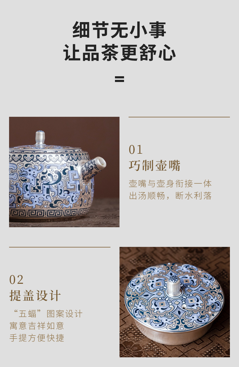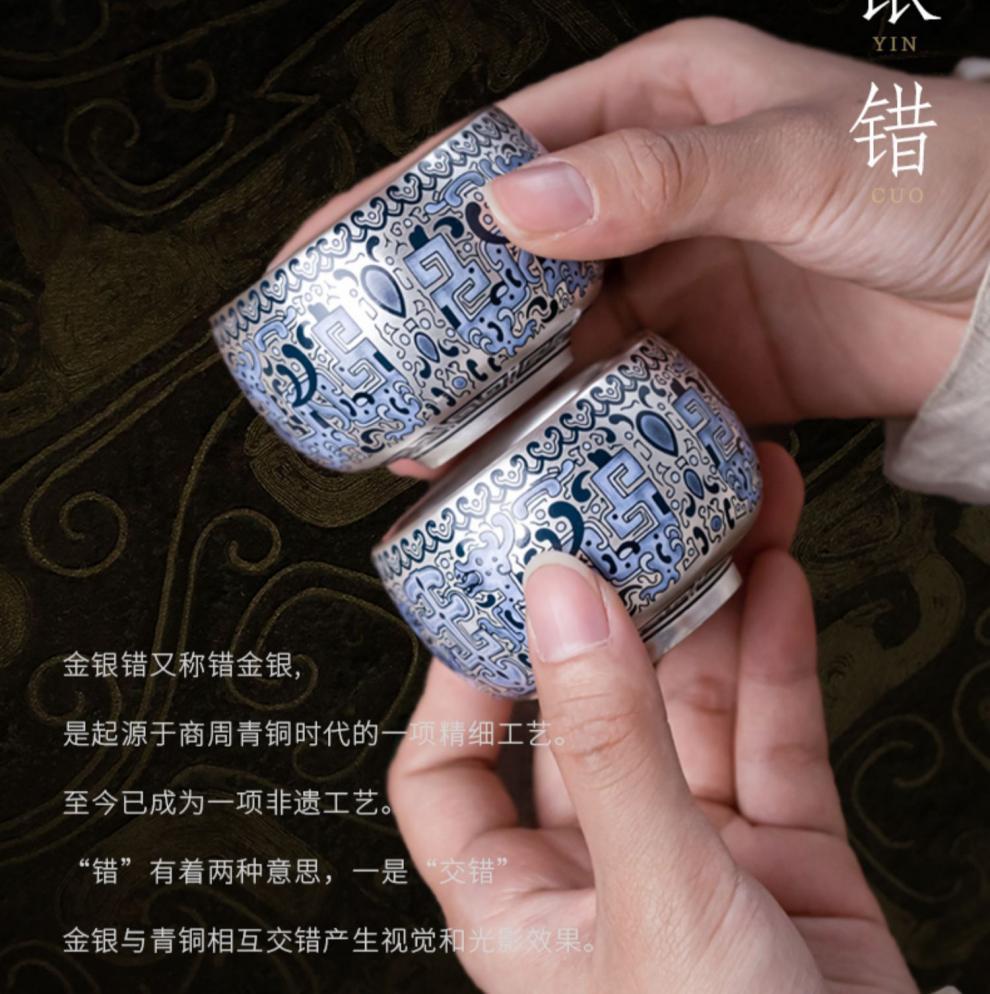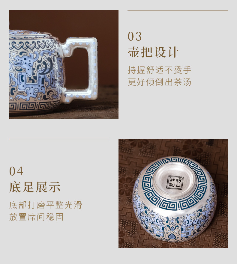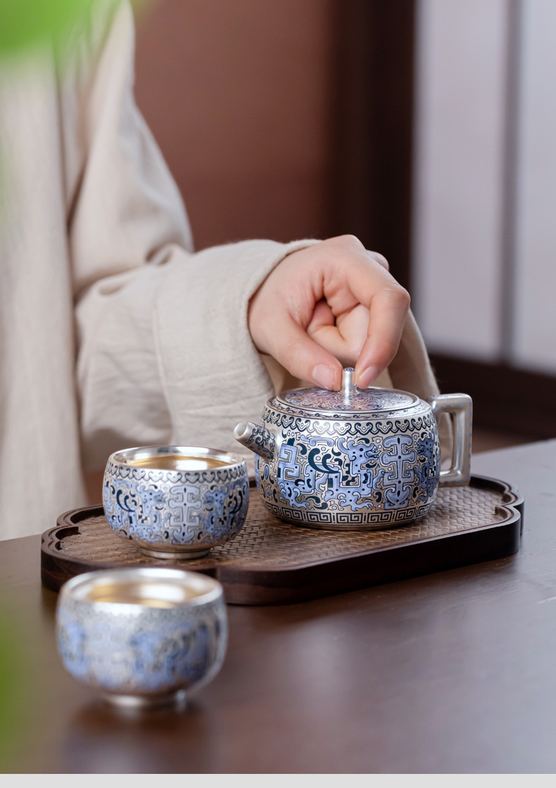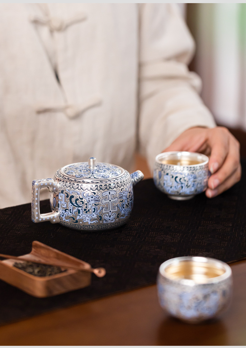 Ấm trà bạc phong cách Trung Quốc, tách trà, quà tặng cầm tay, bộ trà kung fu mạ bạc cổ điển vàng bạc sáng tạo cao cấp
