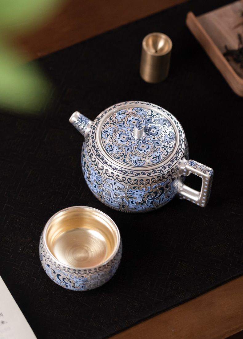 - Ấm trà bạc phong cách Trung Quốc, tách trà, quà tặng cầm tay, bộ trà kung fu mạ bạc cổ điển vàng bạc sáng tạo cao cấp