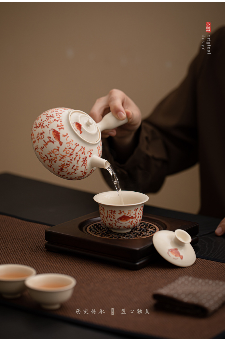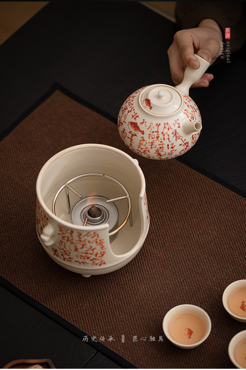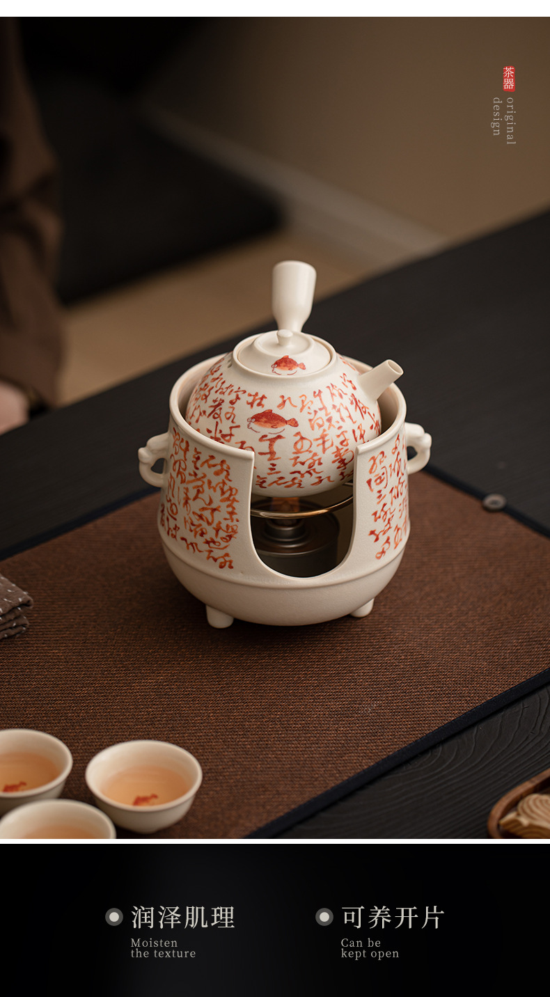 Ấm trà cá tráng men soda, bếp cồn, hàng trăm mảnh vỡ, bếp nấu trà gia dụng, bộ trà có thể nuôi dưỡng bộ trà kung fu