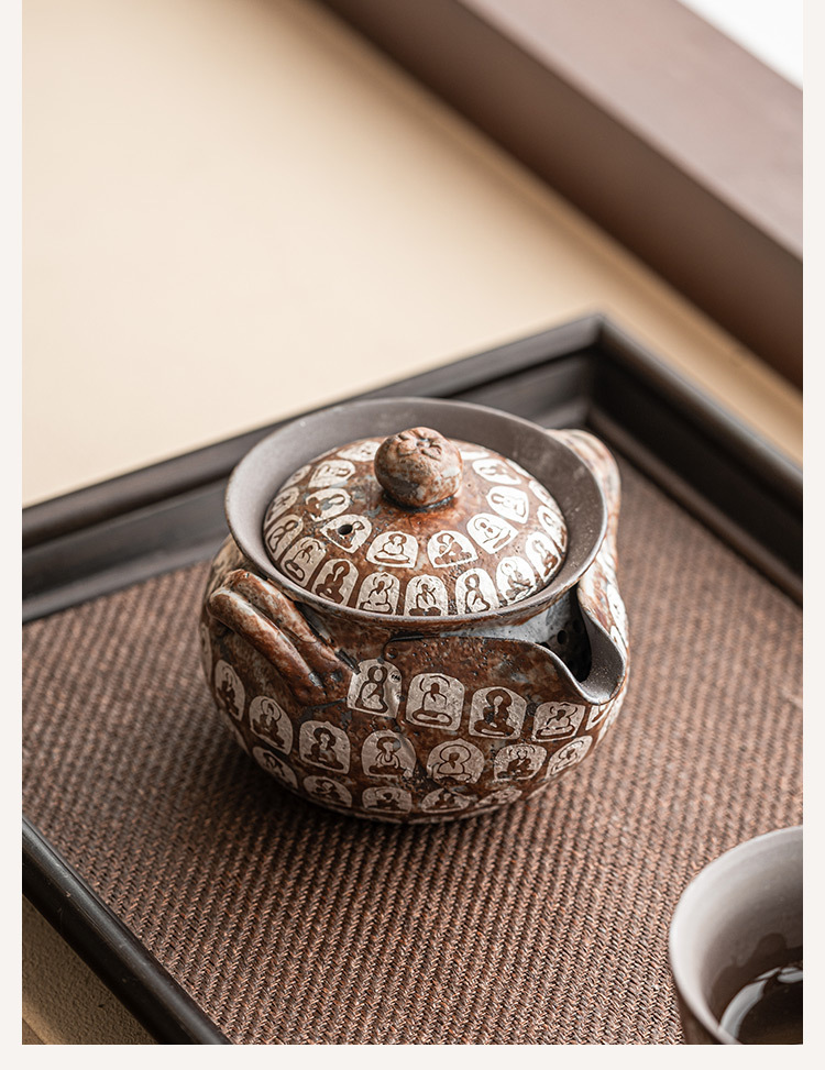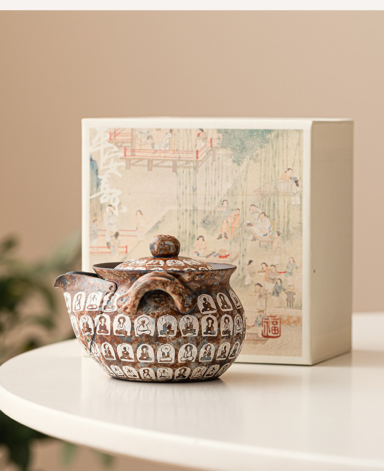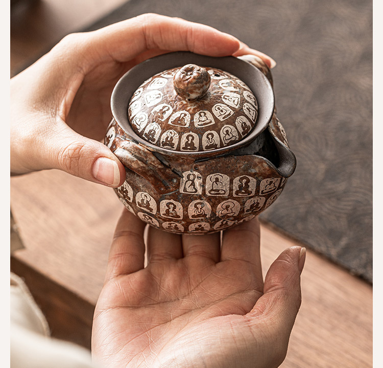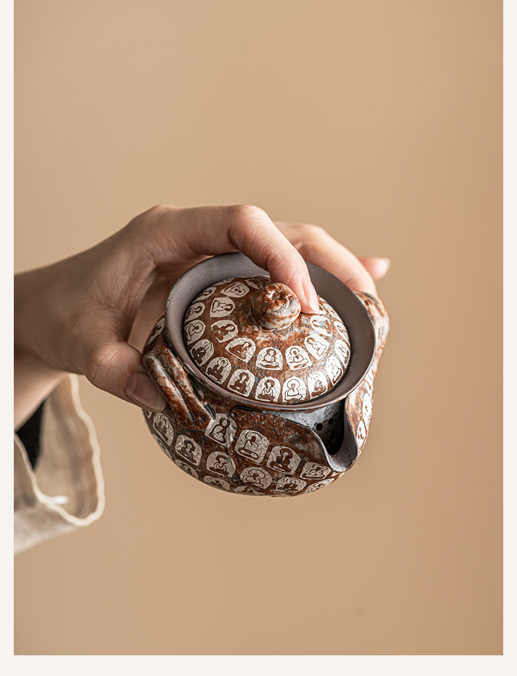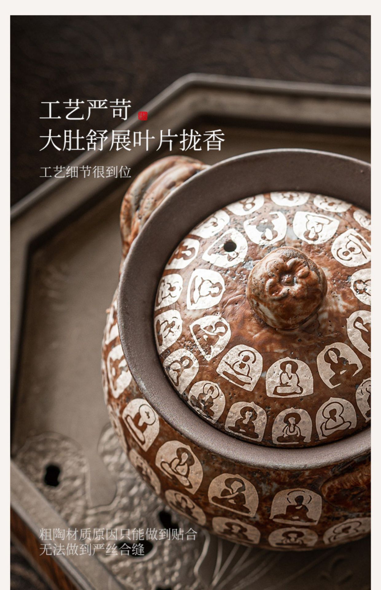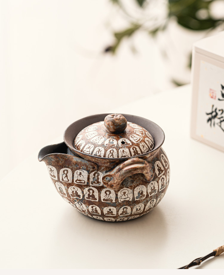 - Ấm trà cầm tay Vạn Phật mạ bạc Ấm trà lọc chống bỏng Bộ trà Kung Fu cổ điển Trung Quốc Ấm Đơn gốm sứ cao cấp có nắp