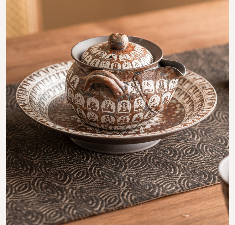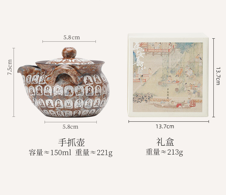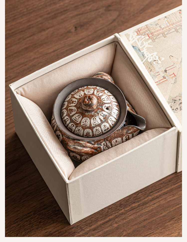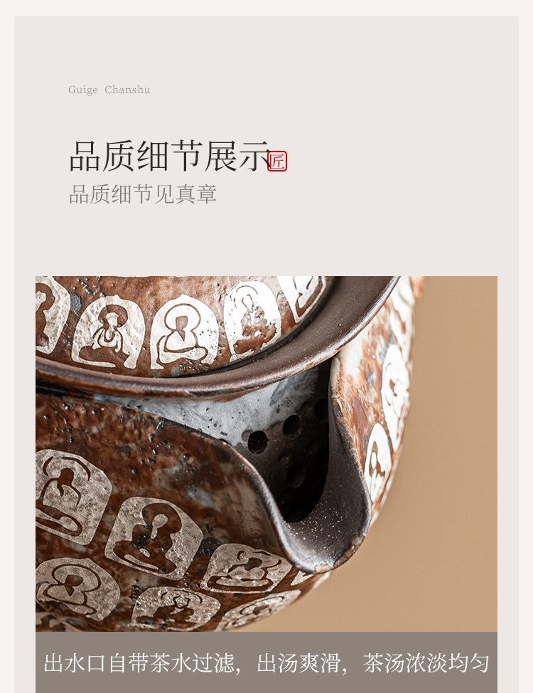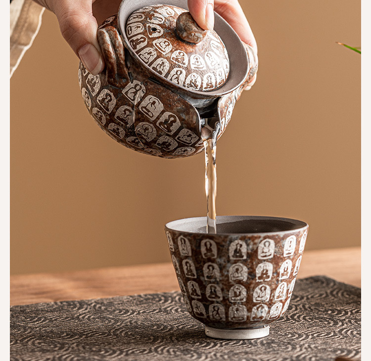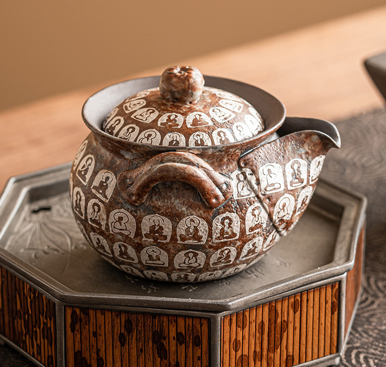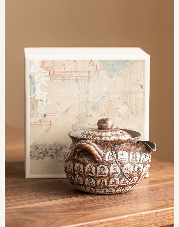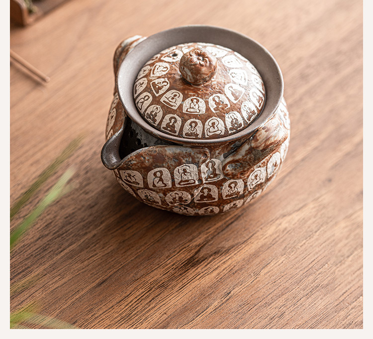 - Ấm trà cầm tay Vạn Phật mạ bạc Ấm trà lọc chống bỏng Bộ trà Kung Fu cổ điển Trung Quốc Ấm Đơn gốm sứ cao cấp có nắp