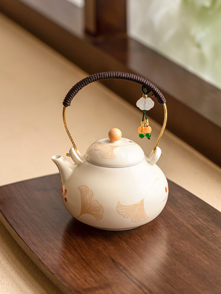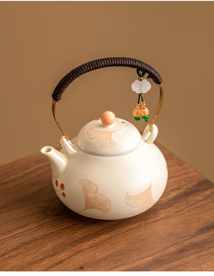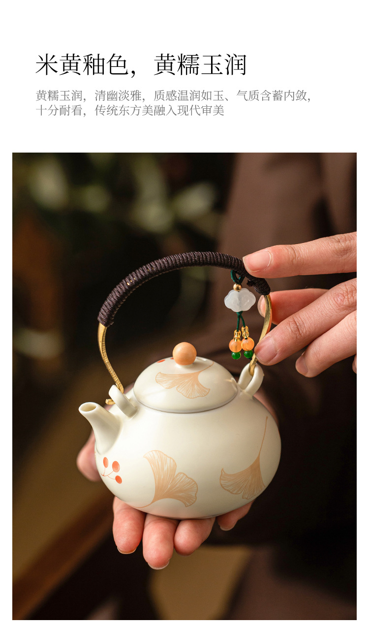 - Ấm trà chùm dây buộc bạch quả màu be ấm trà gốm sứ pha trà dụng cụ trà kungfu gia dụng lọc ấm trà đơn ấm trà nhỏ kiểu Trung Quốc