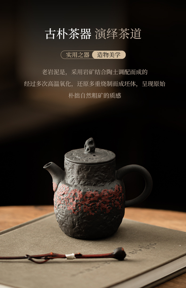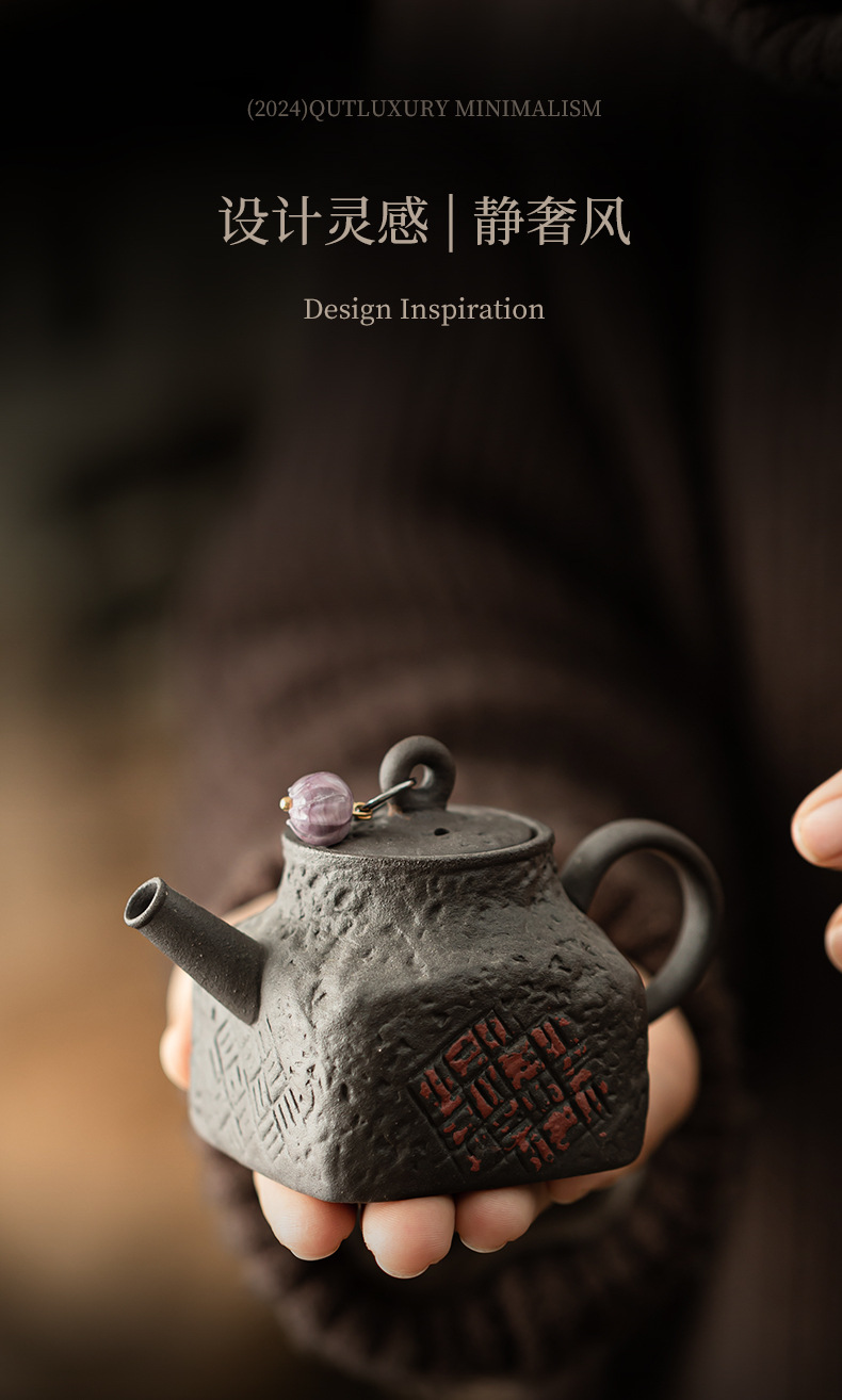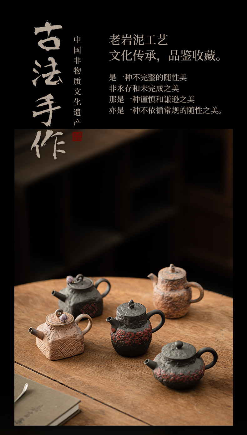 - Ấm trà cổ điển bùn đá cũ ấm cầm tay gốm thô ấm vuông dụng cụ pha trà gia dụng lỗ bóng lọc dụng cụ pha trà Kung Fu ấm đơn