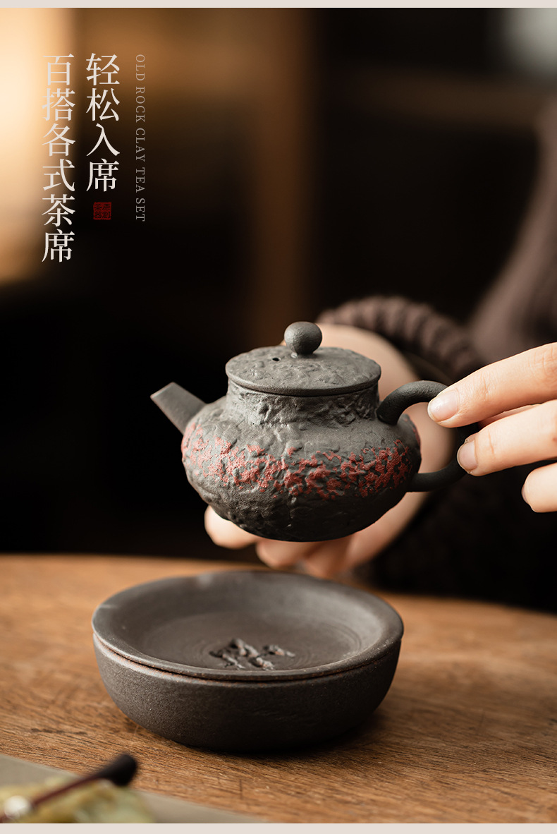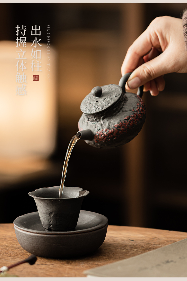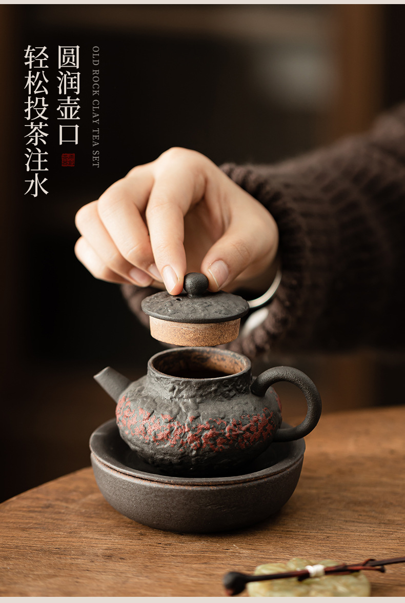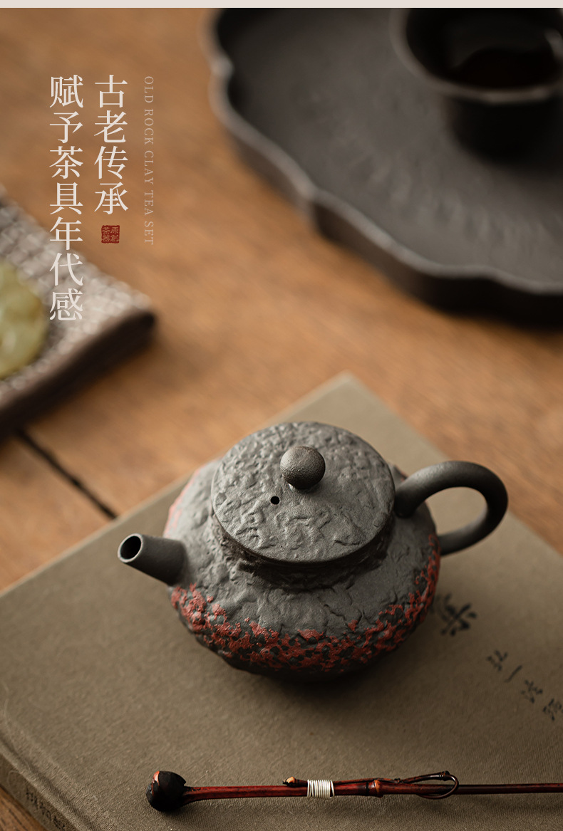 - Ấm trà cổ điển bùn đá cũ ấm cầm tay gốm thô ấm vuông dụng cụ pha trà gia dụng lỗ bóng lọc dụng cụ pha trà Kung Fu ấm đơn