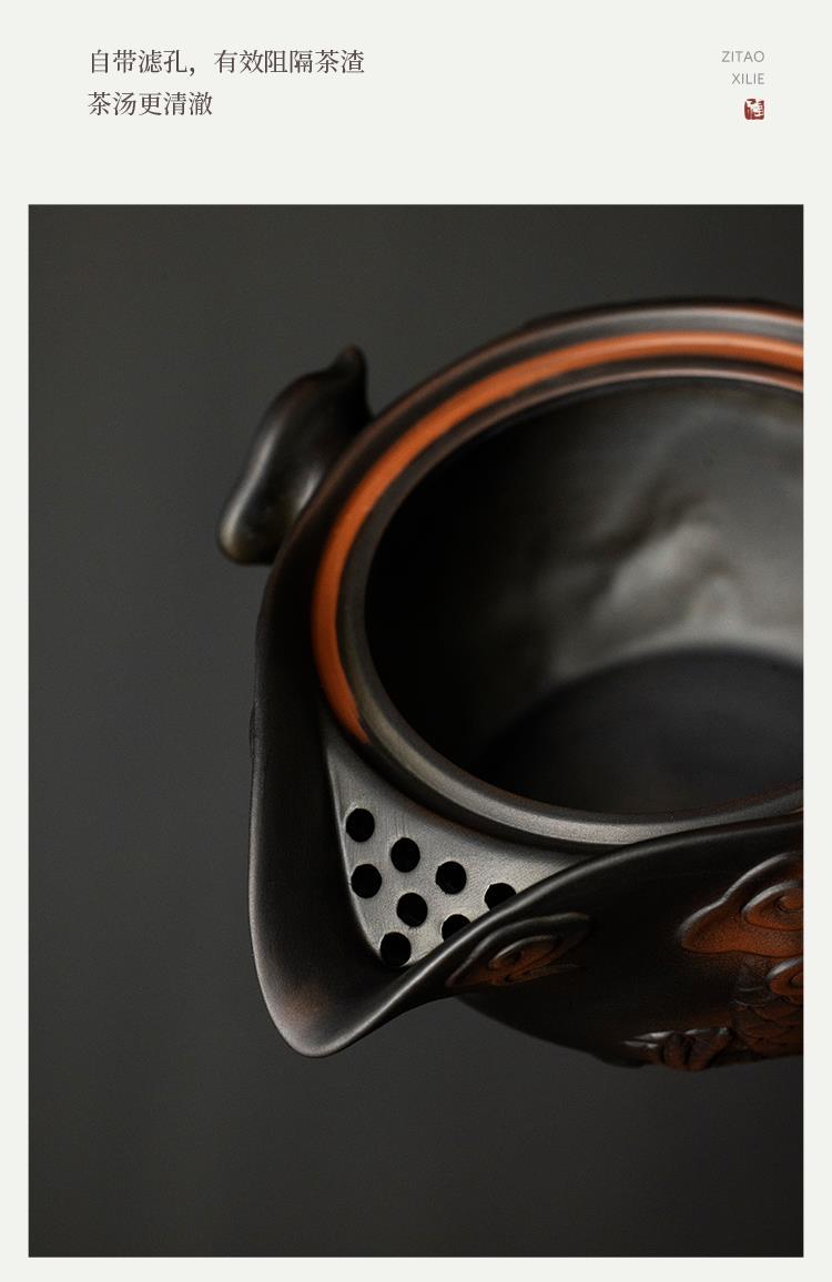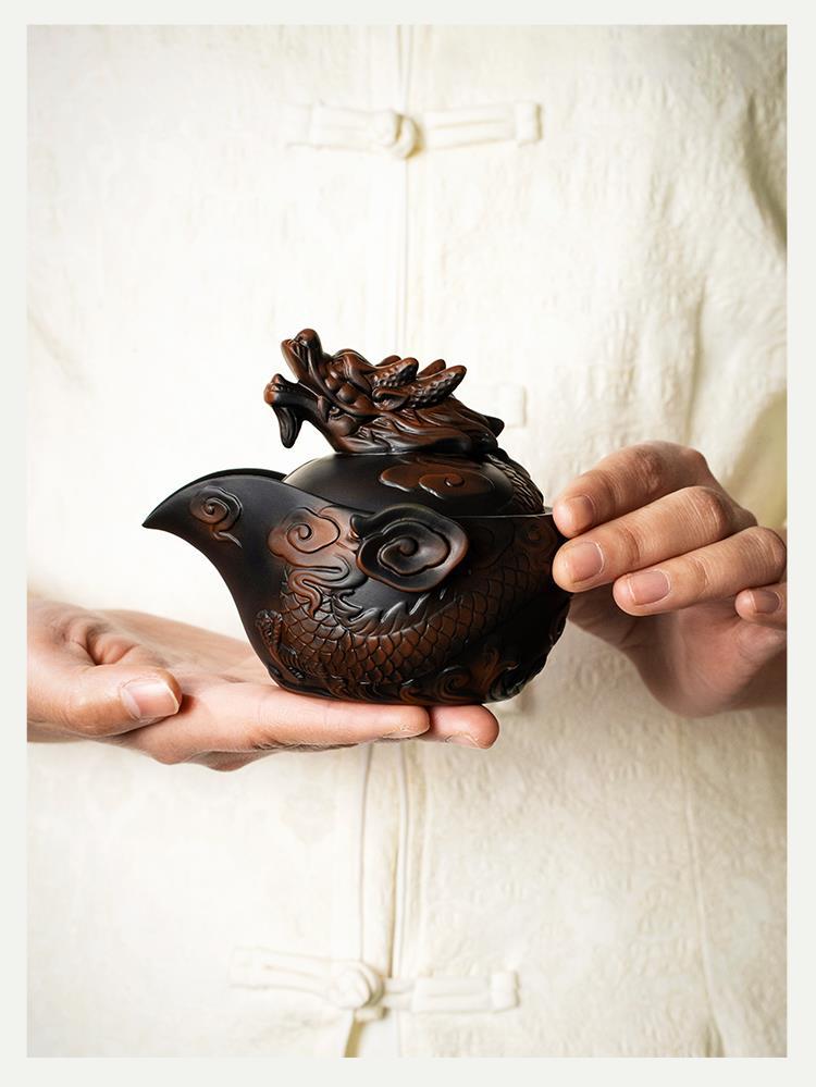 Ấm trà có nắp đậy bằng tay gốm tím Xianglong, cốc trà, cốc trà đơn cao cấp, bát trà chống bỏng gia dụng, bộ trà Kung Fu có nắp