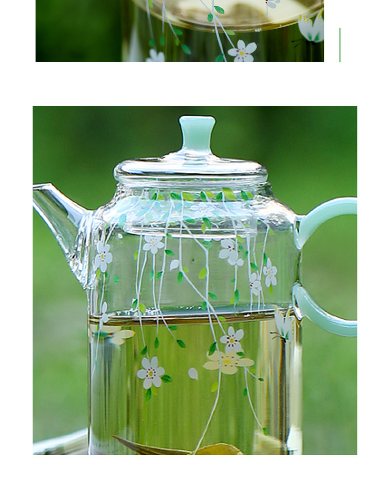 - Ấm trà đặc biệt trà xanh mùa xuân có bộ lọc, ấm trà nhỏ thủy tinh borosilicate chịu nhiệt độ cao, bộ trà nhỏ tươi đơn nồi