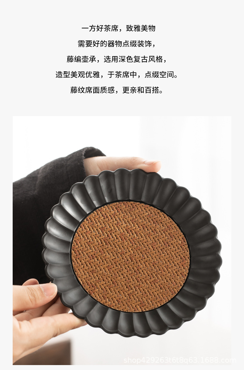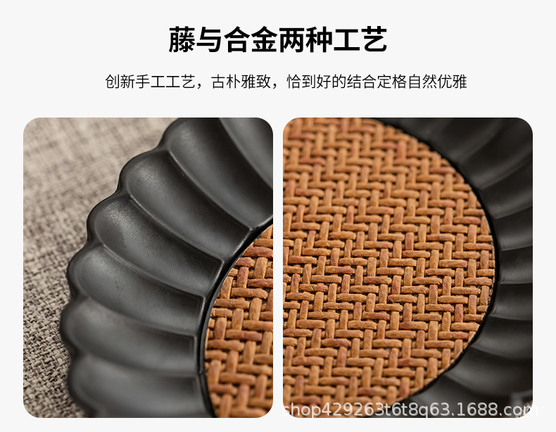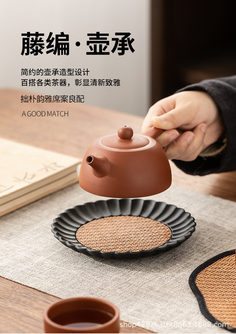 - Ấm trà đan mây, lót ấm pha trà, lót cốc cỡ lớn, phụ kiện bộ trà kungfu gia dụng đơn giản, hợp kim