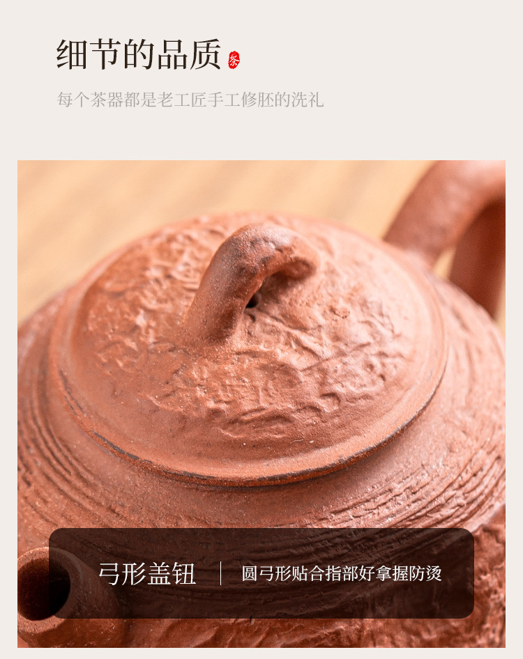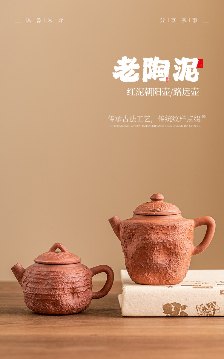 Ấm trà đất sét đỏ làm bằng tay ấm trà cầm tay phong cách wabana phong cách cổ điển gia dụng dụng dụng cụ uống trà ấm trà trà