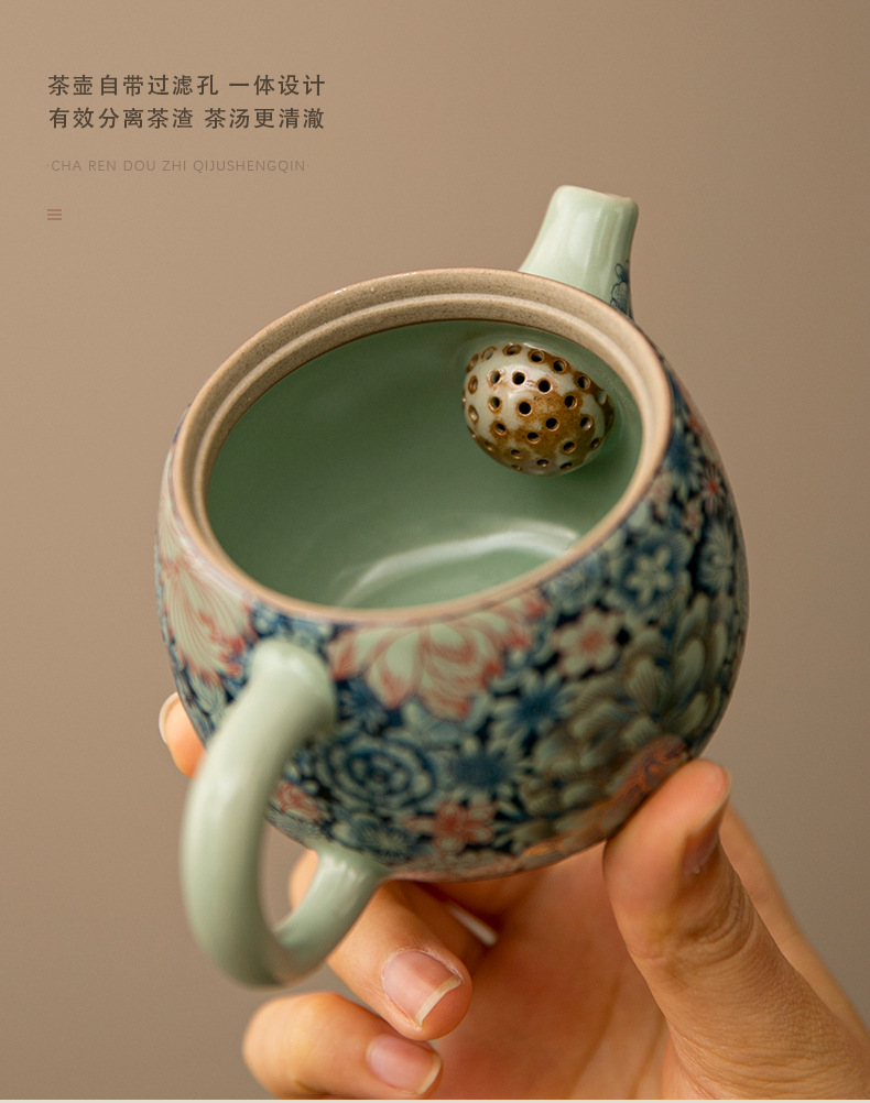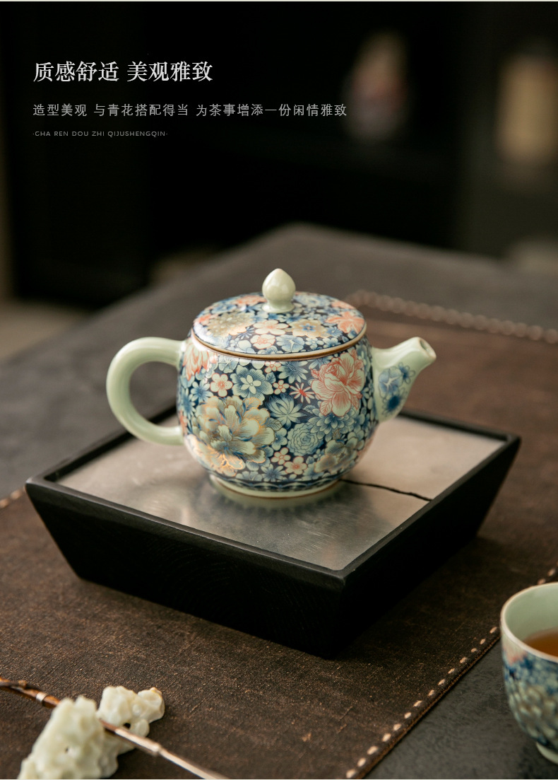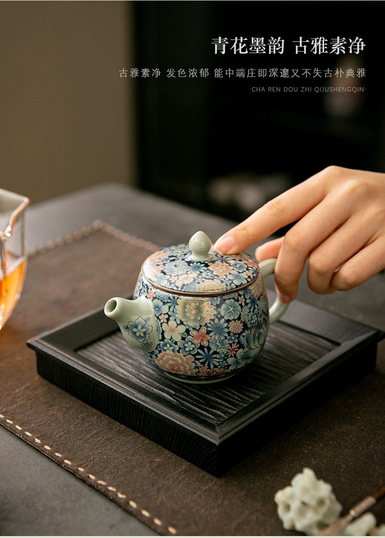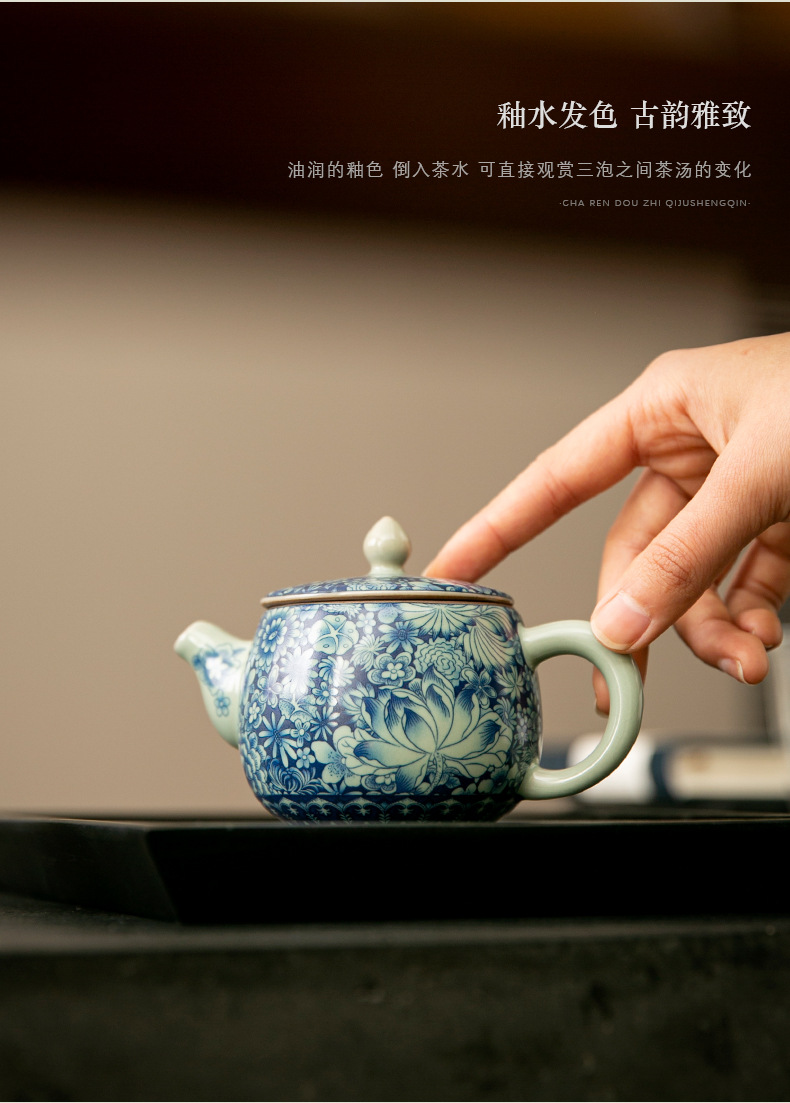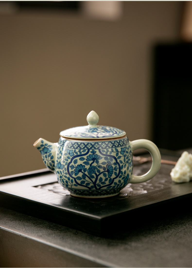 - Ấm trà Daxishi màu xanh và trắng Lò nung Trà đơn Bộ trà Kung Fu tráng men tráng men tráng men vàng gia dụng cao cấp