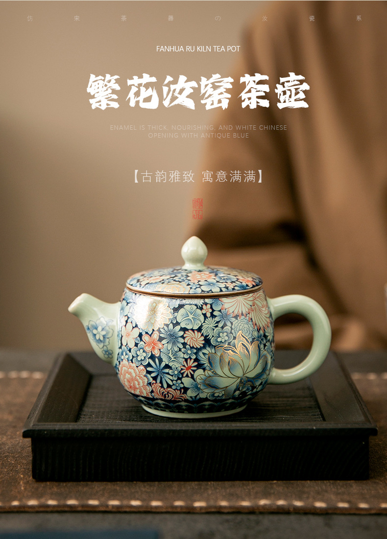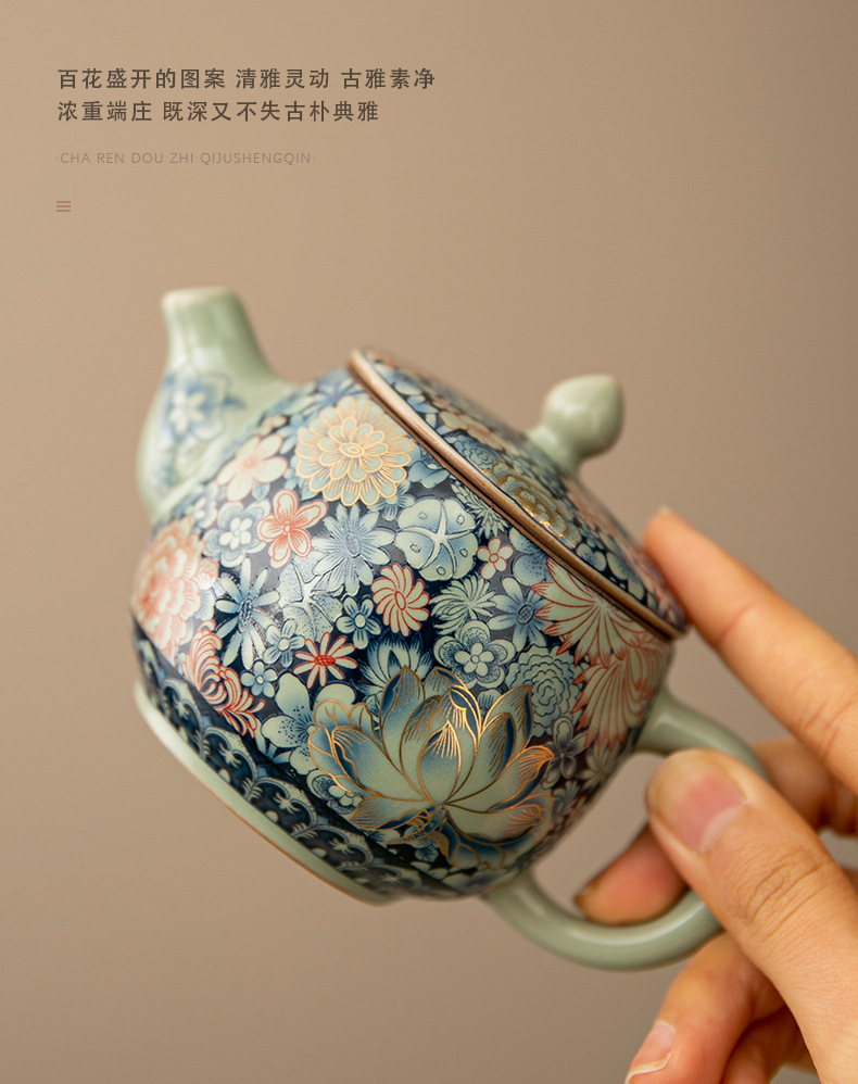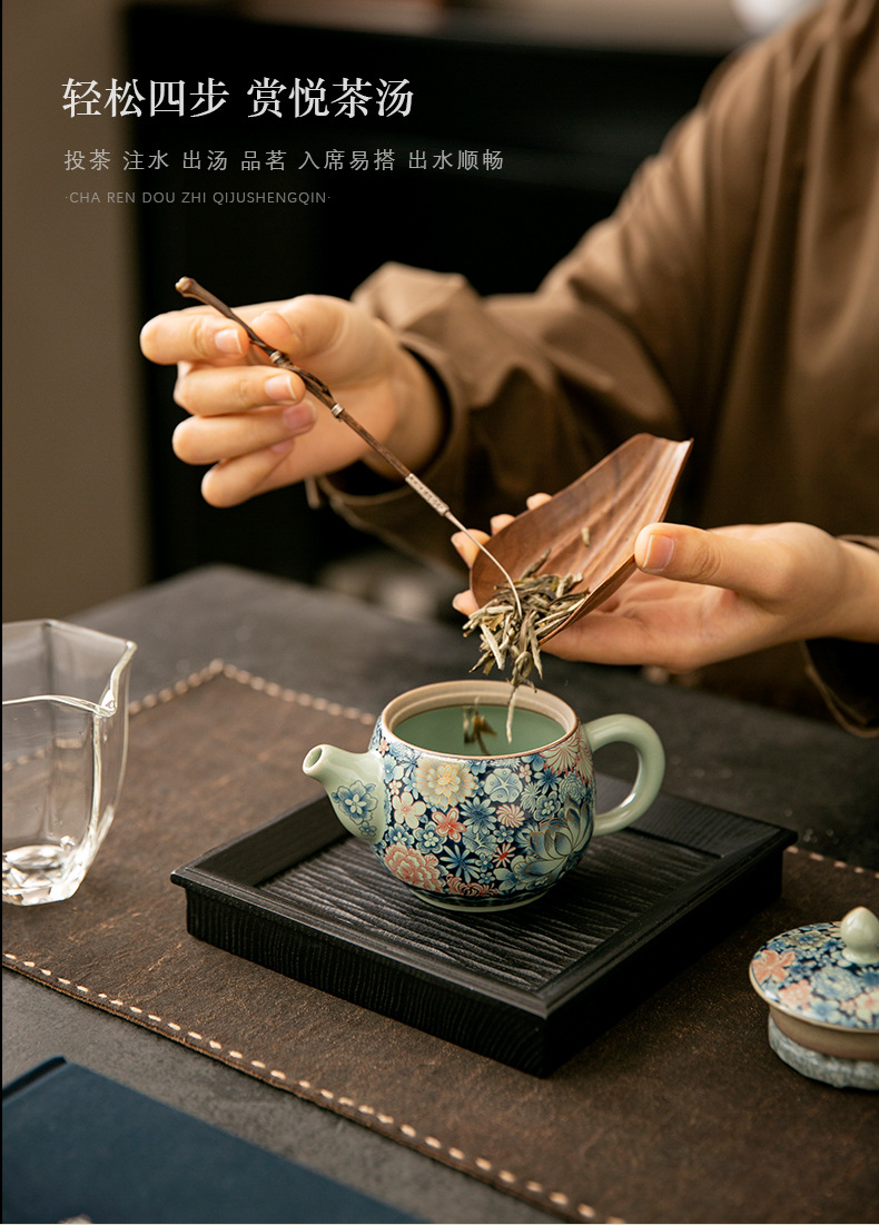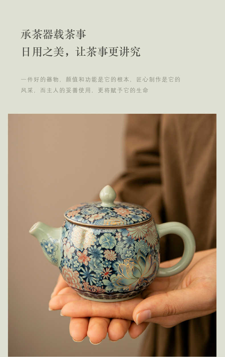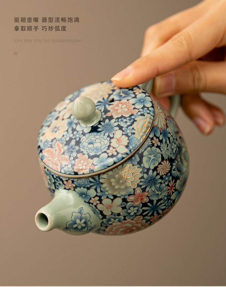 - Ấm trà Daxishi màu xanh và trắng Lò nung Trà đơn Bộ trà Kung Fu tráng men tráng men tráng men vàng gia dụng cao cấp