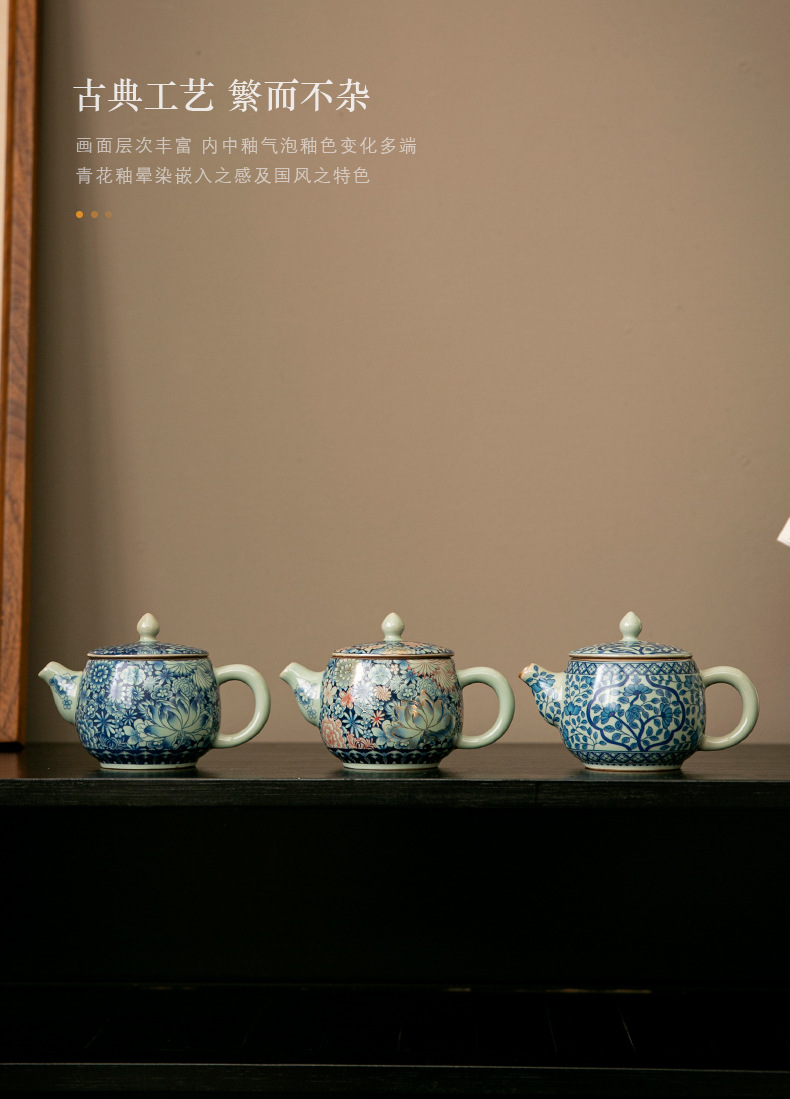 Ấm trà Daxishi màu xanh và trắng Lò nung Trà đơn Bộ trà Kung Fu tráng men tráng men tráng men vàng gia dụng cao cấp