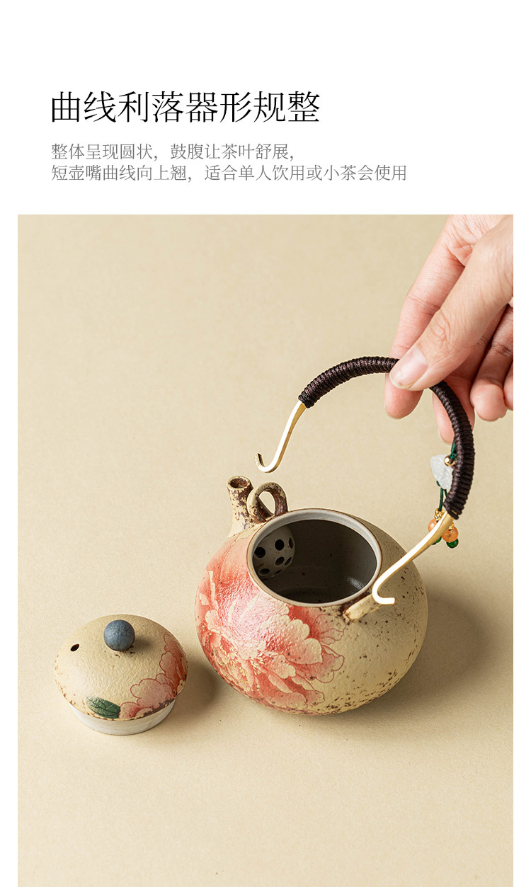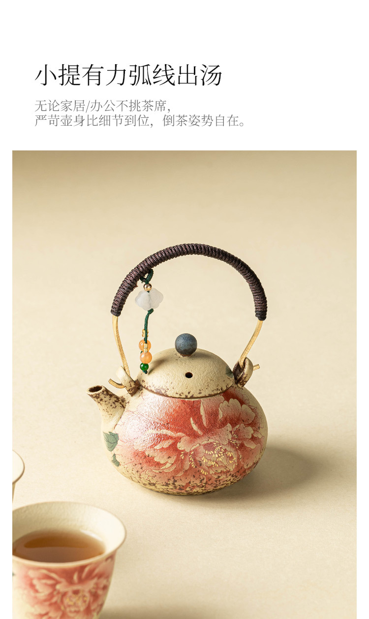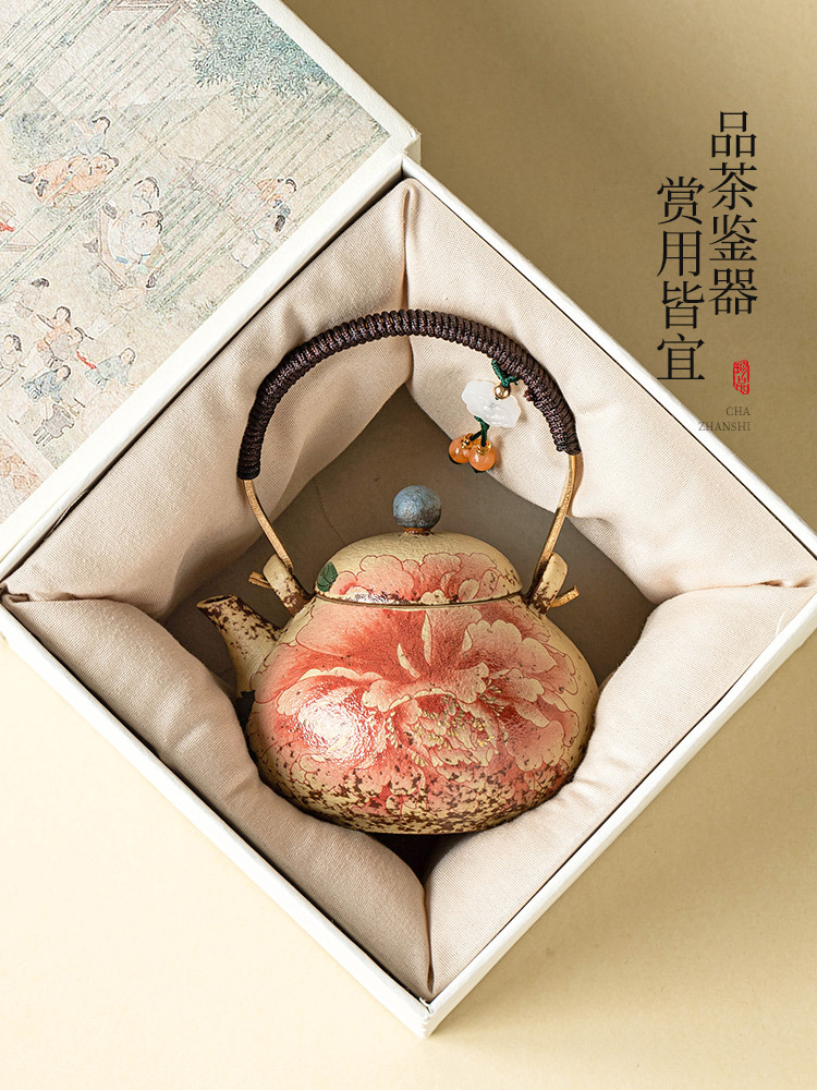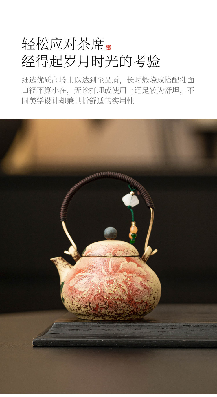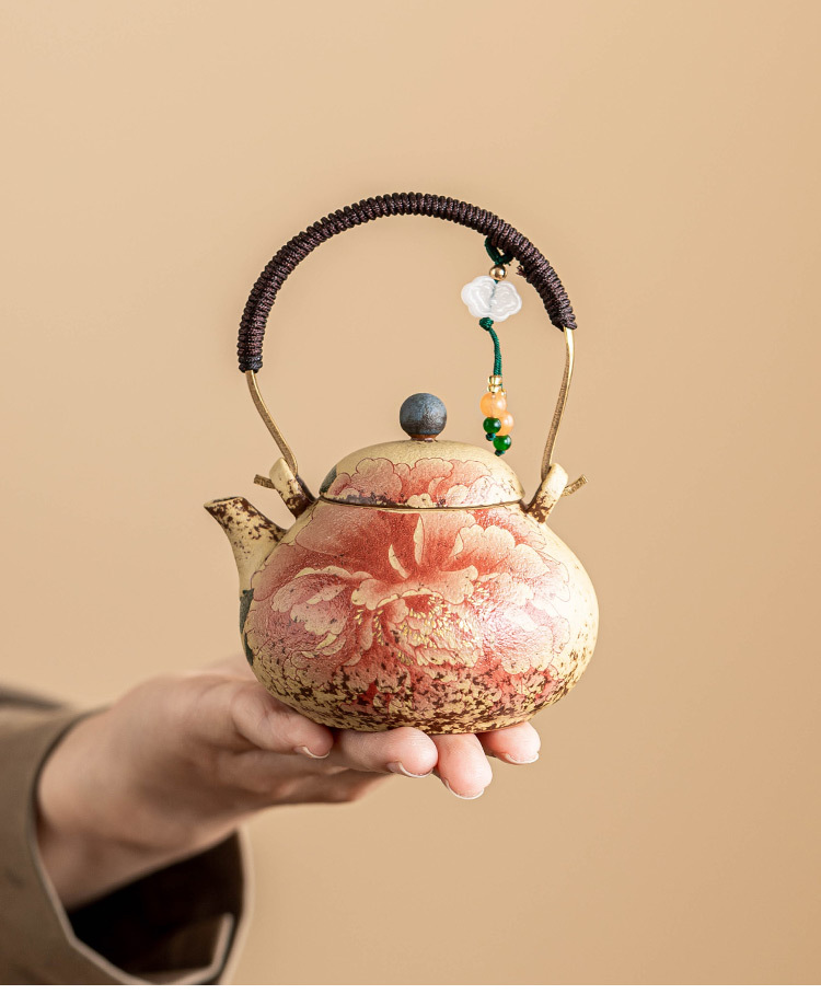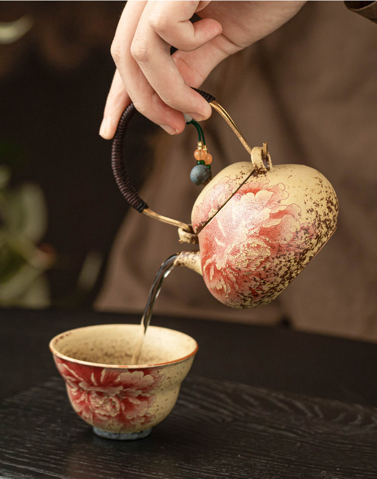 - Ấm trà đỏ đá lửa trắng xanh ấm trà hoa mẫu đơn vẽ tay gốm sứ tinh tế ấm tách nước trà mới