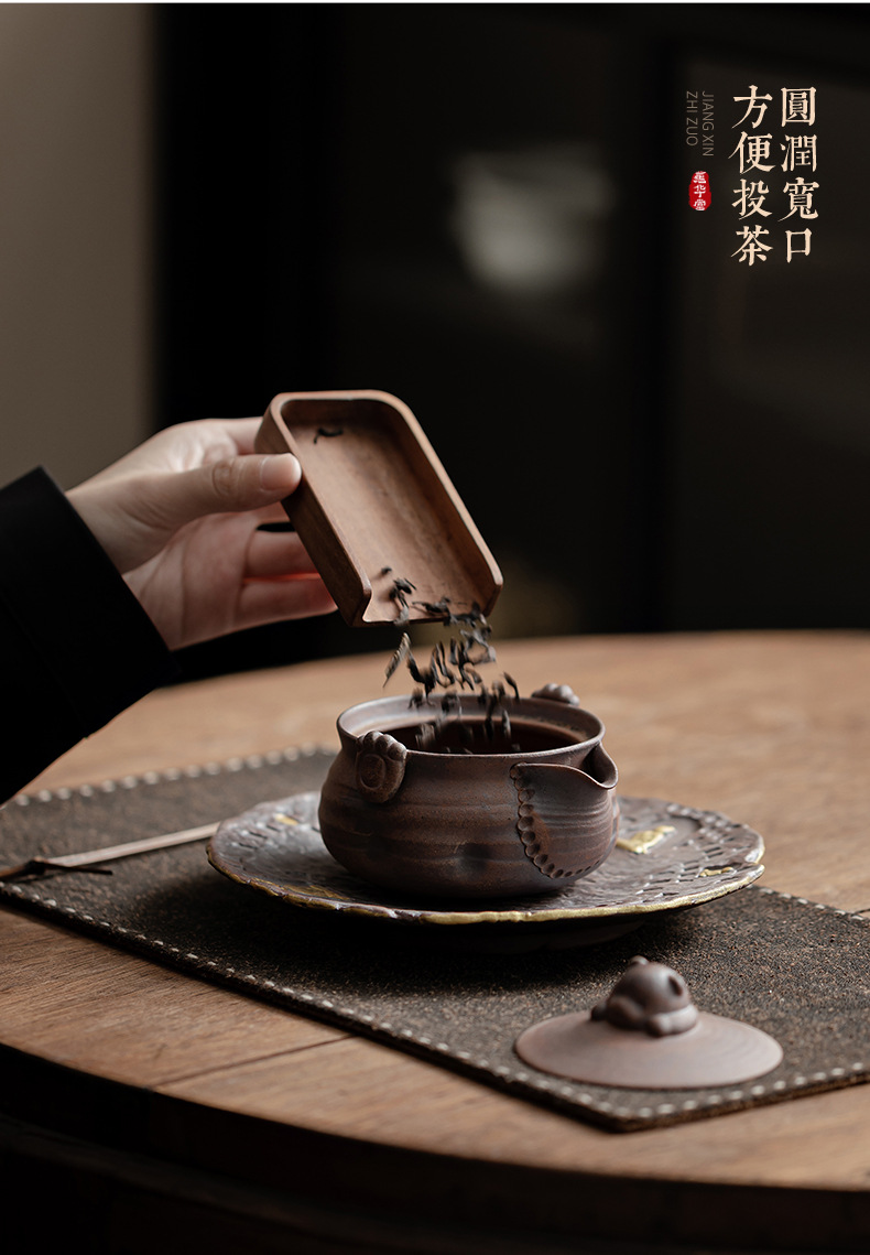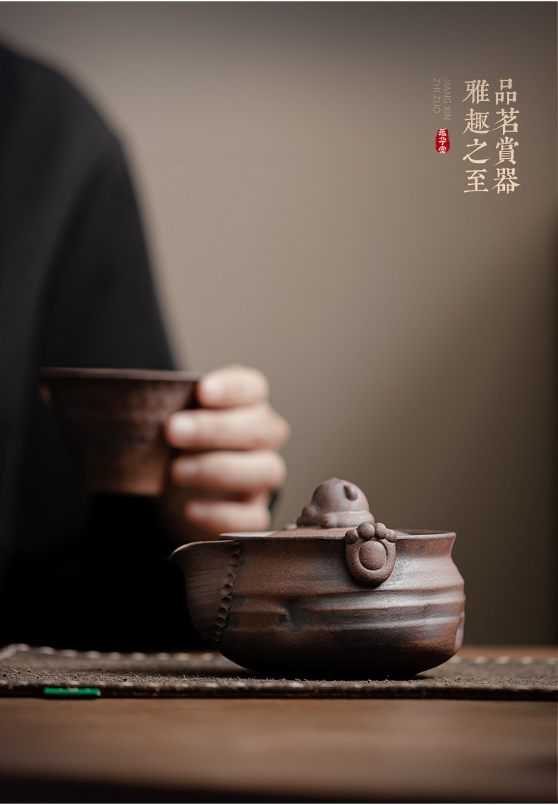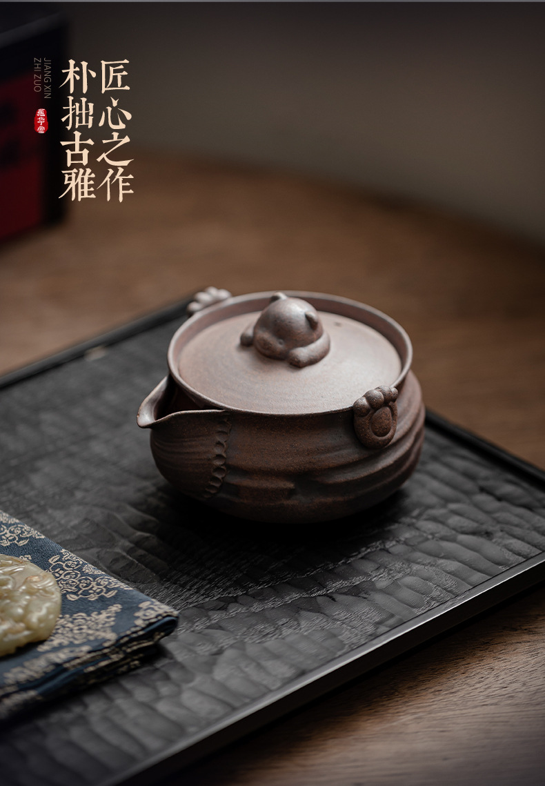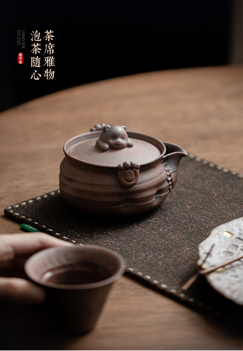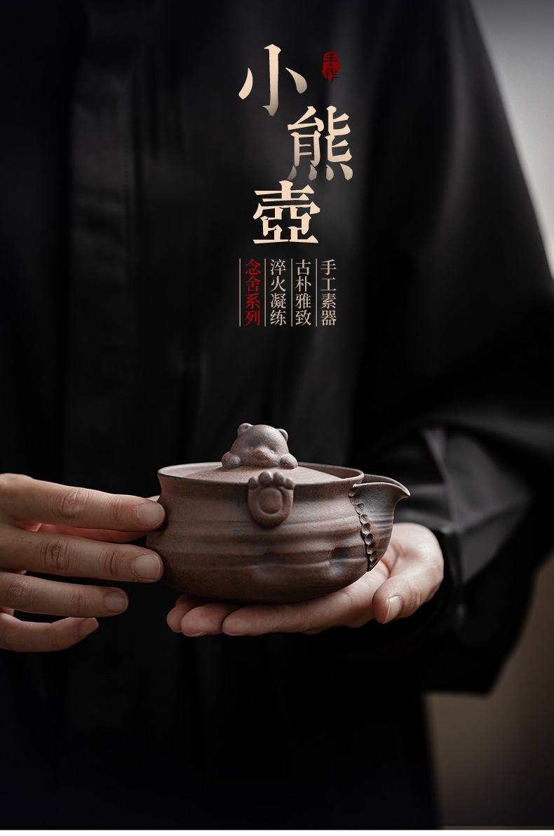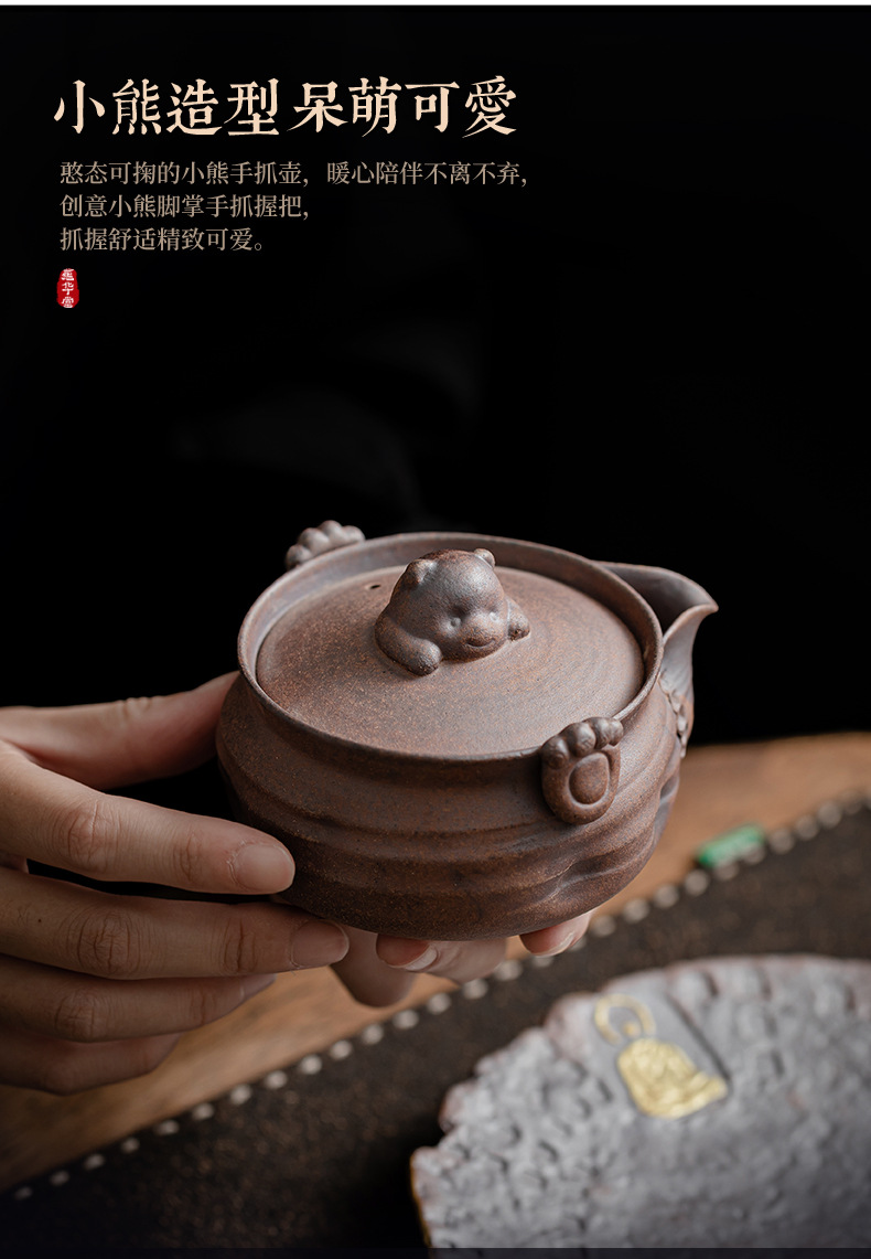 Ấm trà gấu nhỏ đất đá cũ ấm trà gốm sứ hộp quà tặng bộ trà kungfu cổ điển văn phòng gia dụng ấm pha trà