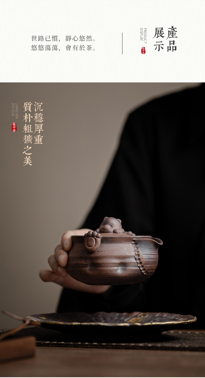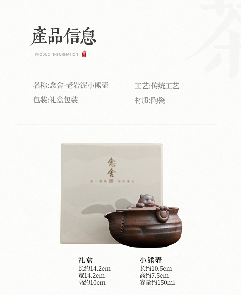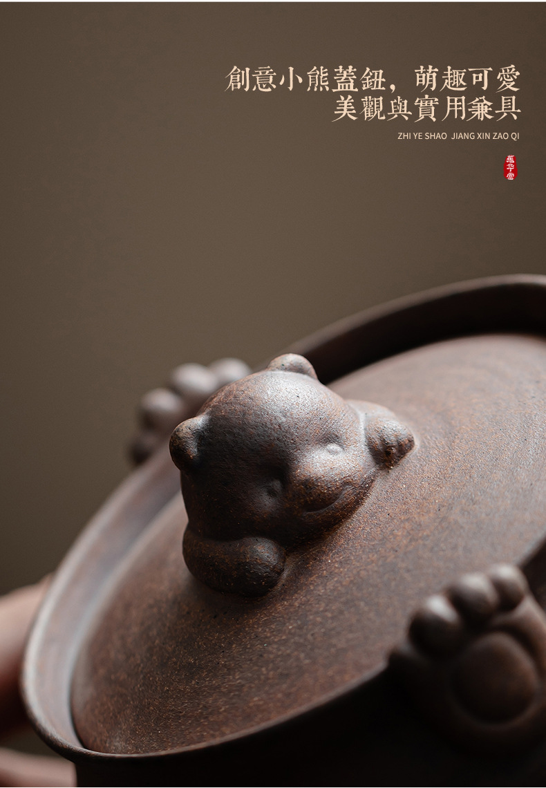 - Ấm trà gấu nhỏ đất đá cũ ấm trà gốm sứ hộp quà tặng bộ trà kungfu cổ điển văn phòng gia dụng ấm pha trà