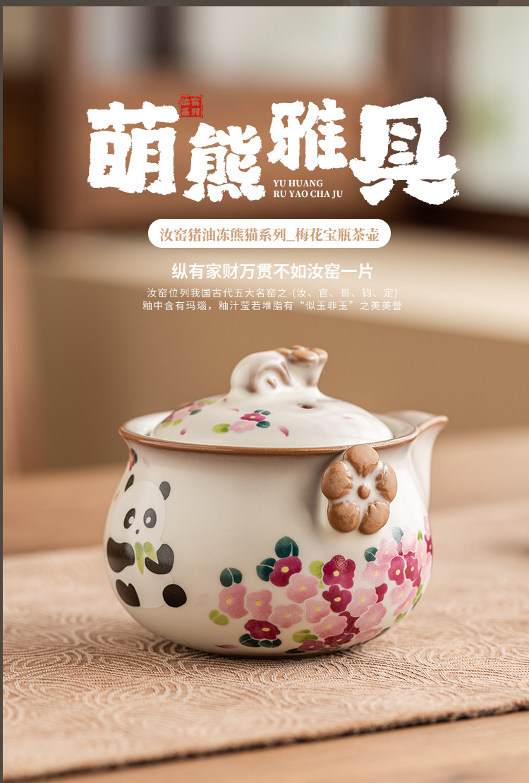 Ấm trà gấu trúc đông lạnh mỡ lợn ấm đơn ấm cầm tay có thể mở được ở lò Ru ấm pha trà bộ trà nữ gia dụng cao cấp kiểu Trung Quốc