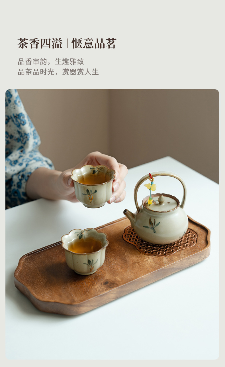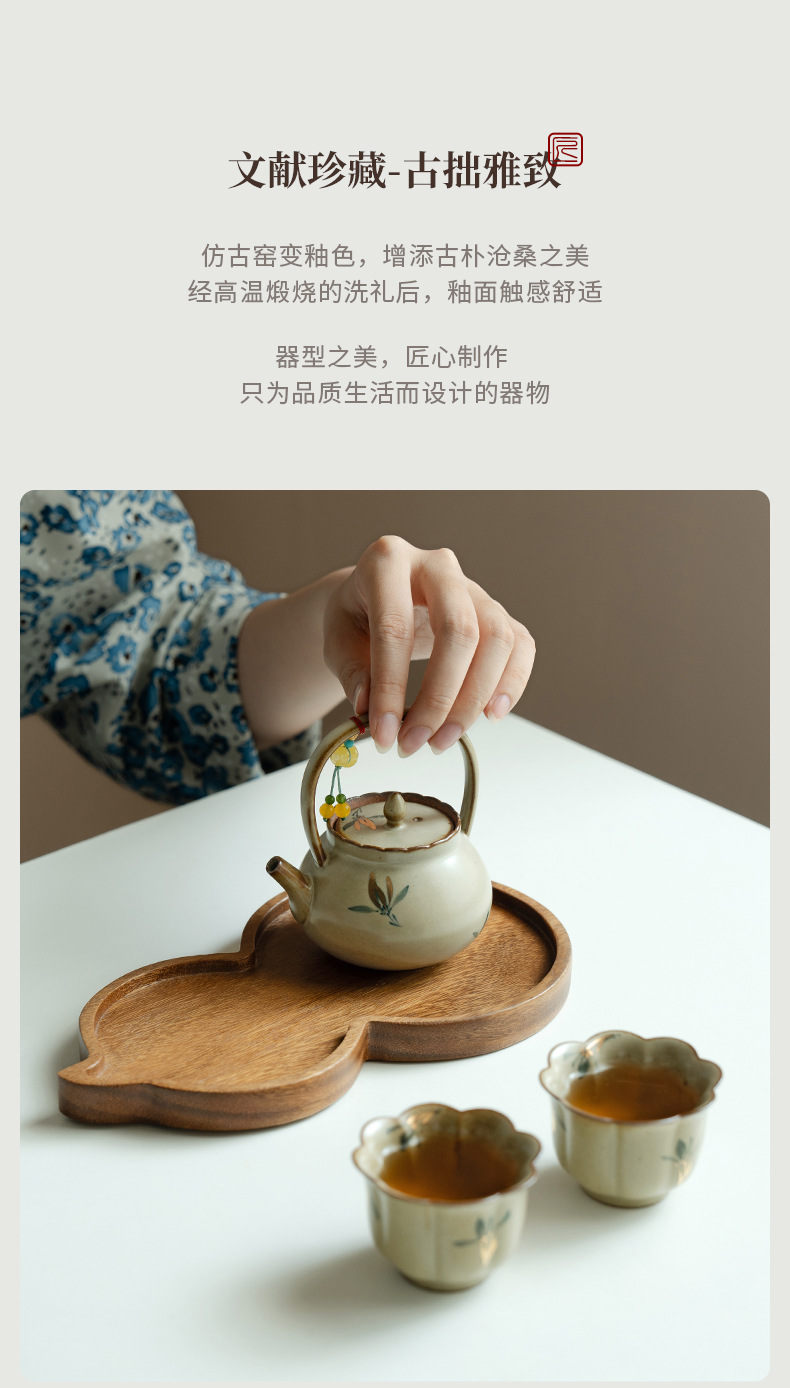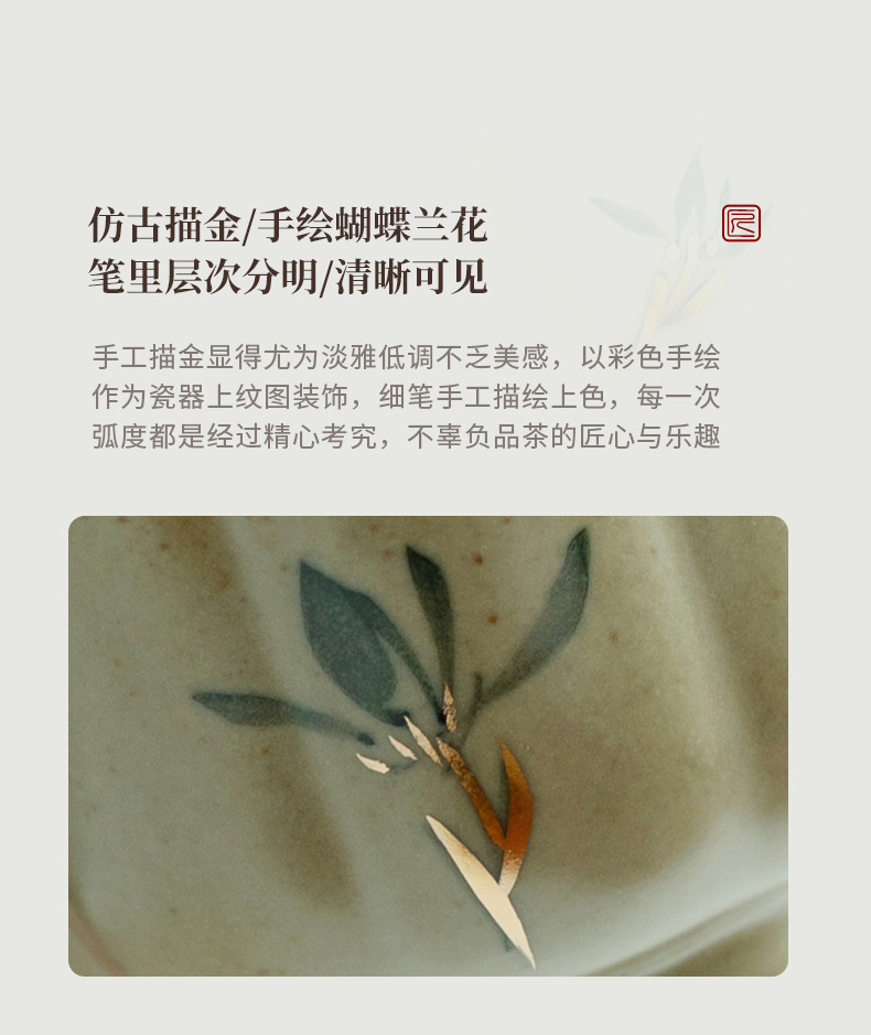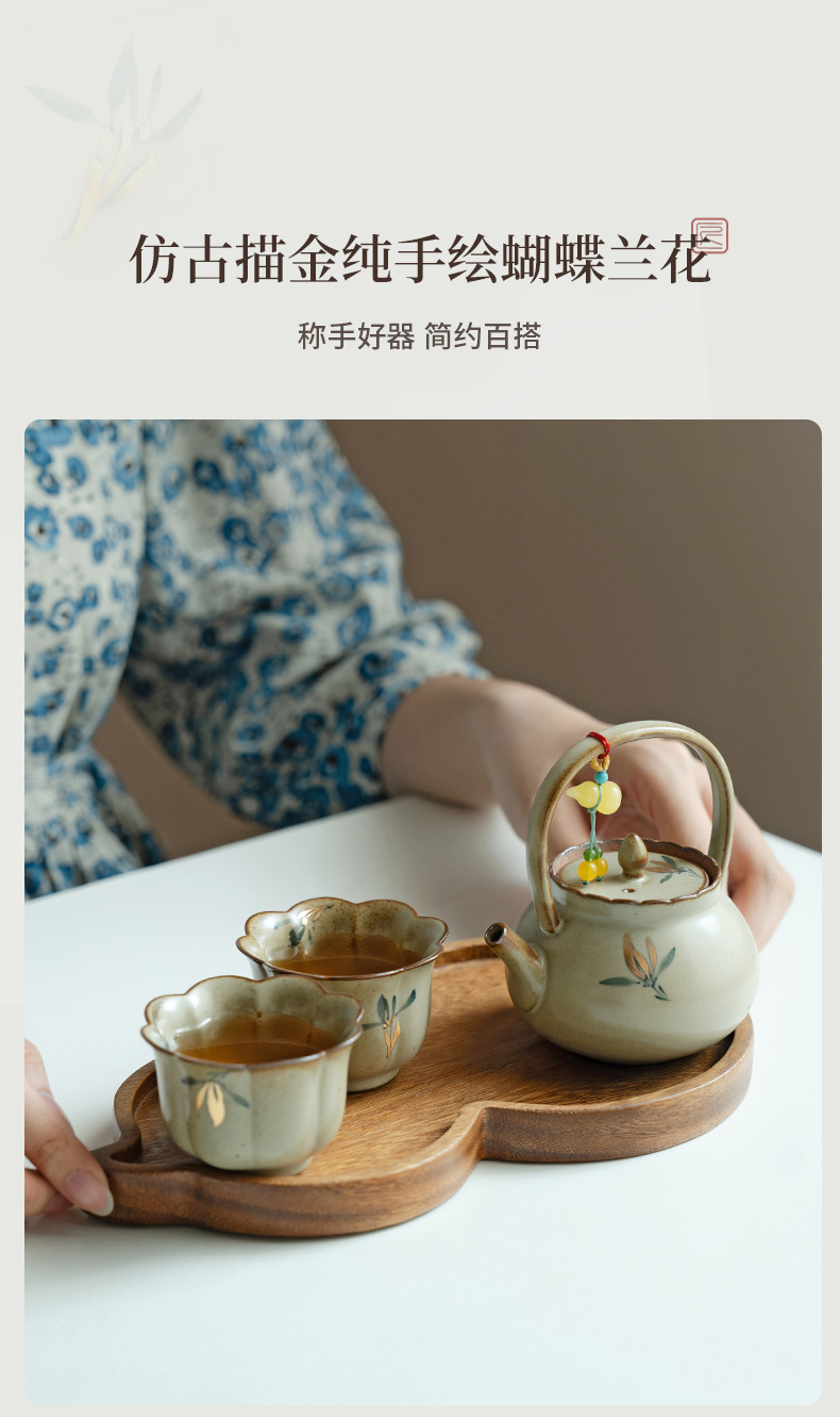 Ấm trà gia dụng, bộ dụng cụ pha trà Kung Fu, bộ trà hoa lan bướm vẽ tay vàng cổ, một bình hai cốc