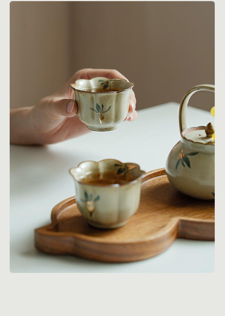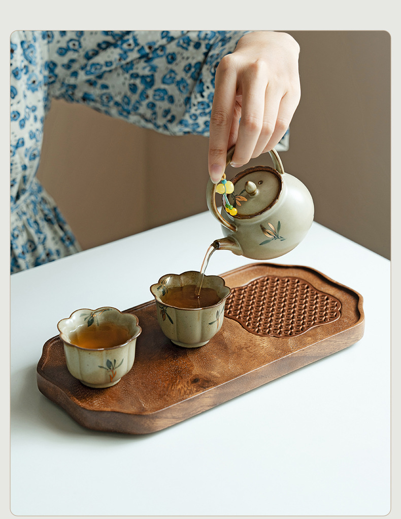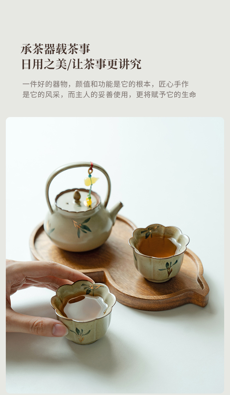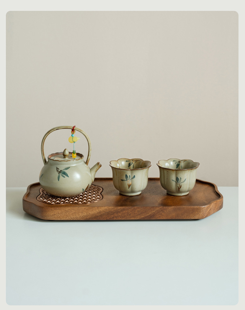 Ấm trà gia dụng, bộ dụng cụ pha trà Kung Fu, bộ trà hoa lan bướm vẽ tay vàng cổ, một bình hai cốc
