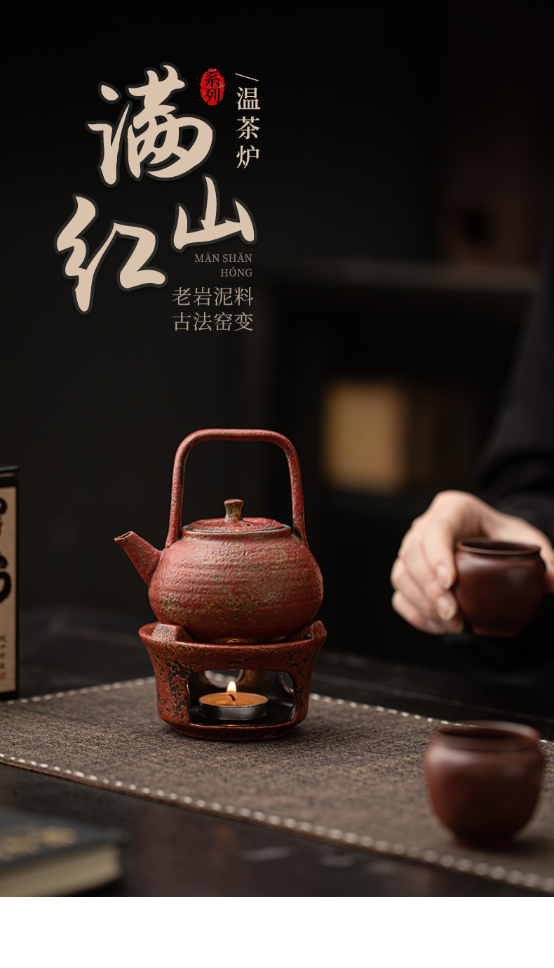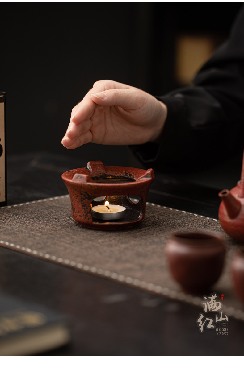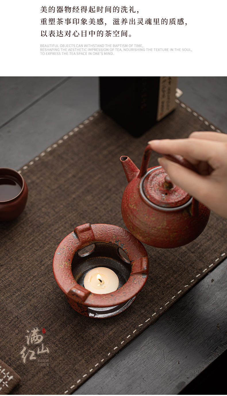 - Ấm trà gốm mộc mạc cổ điển có đế sưởi bằng nến để sử dụng tại nhà và văn phòng