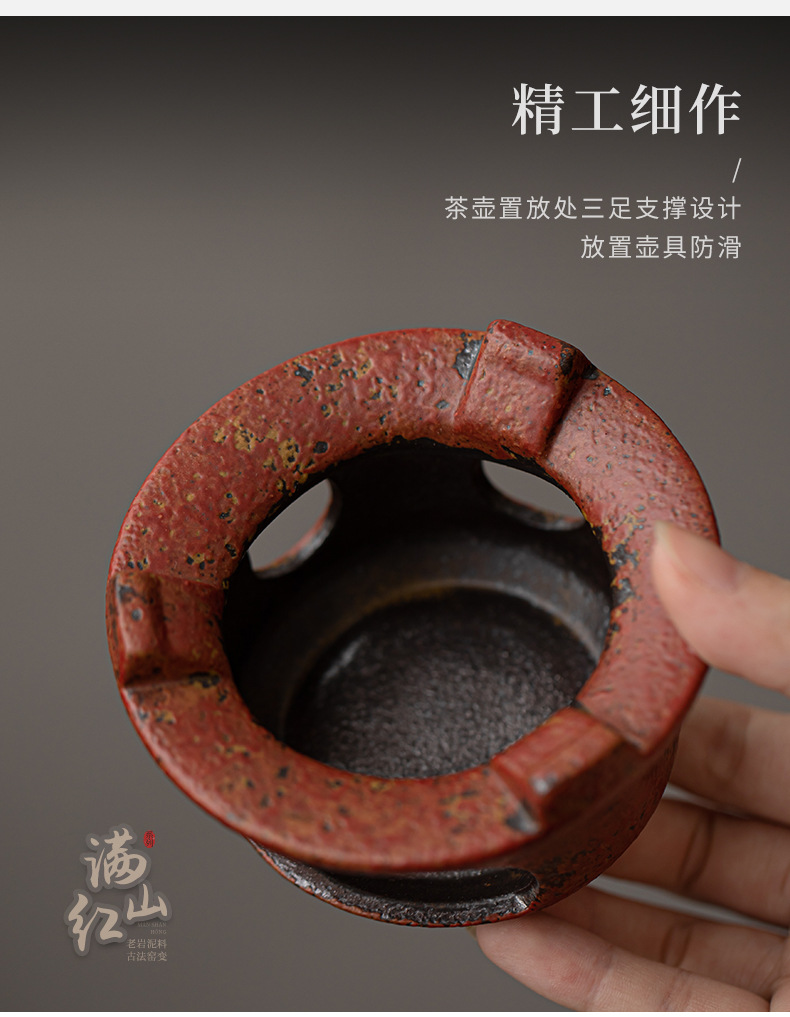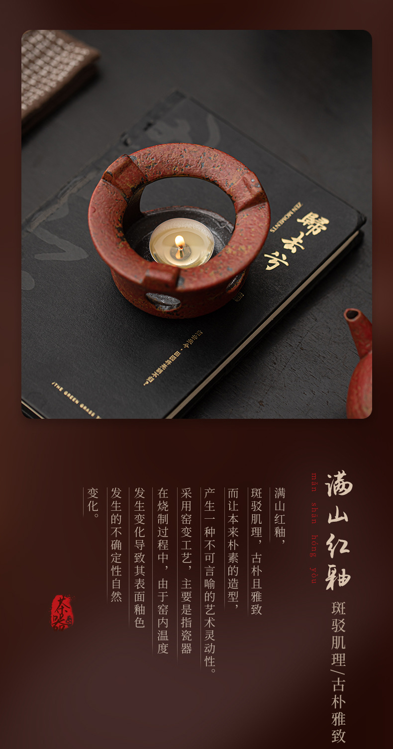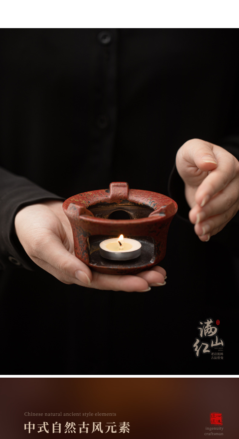 - Ấm trà gốm mộc mạc cổ điển có đế sưởi bằng nến để sử dụng tại nhà và văn phòng