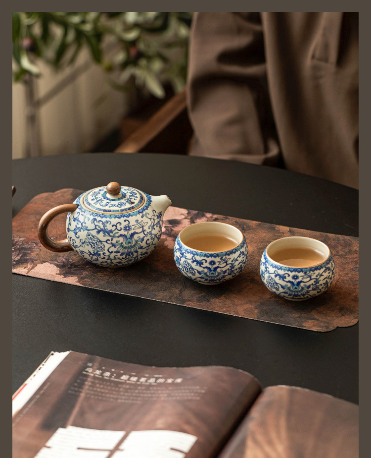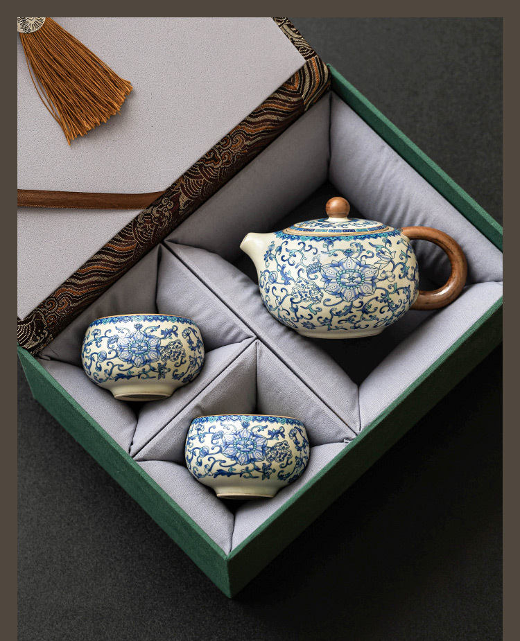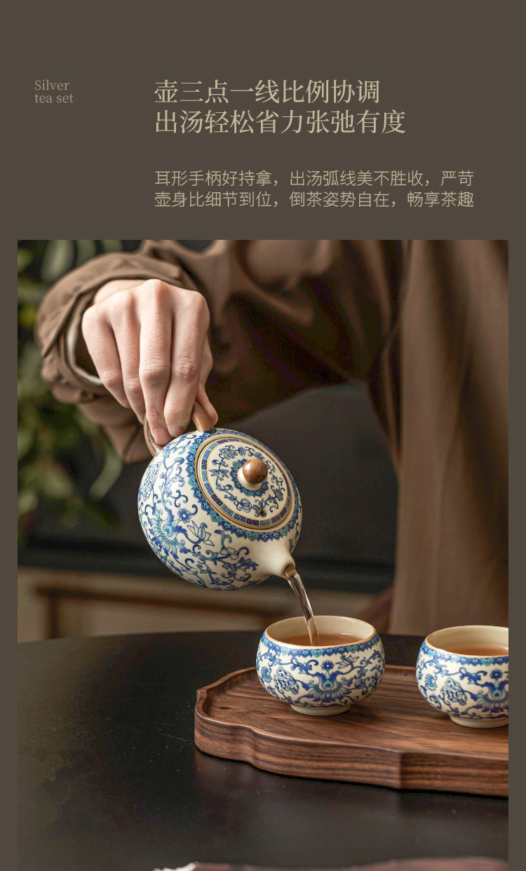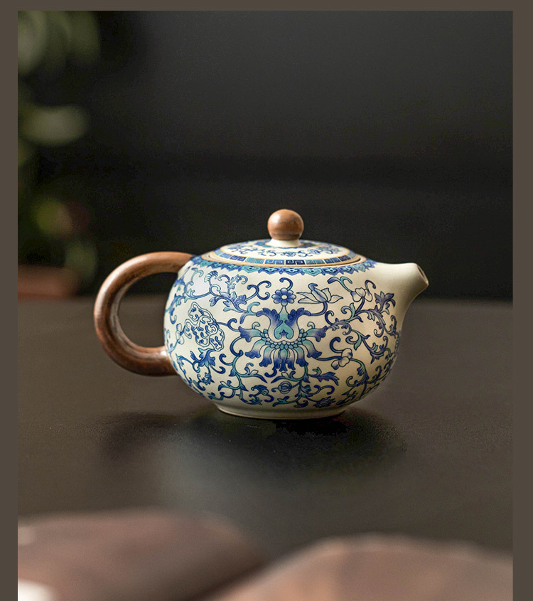 - Ấm trà gốm sứ ấm trà ấm trà gia dụng Ru lò trắng xanh quấn cành sen Xi Shi bộ trà cao cấp kiểu Trung Quốc ấm trà cầm tay