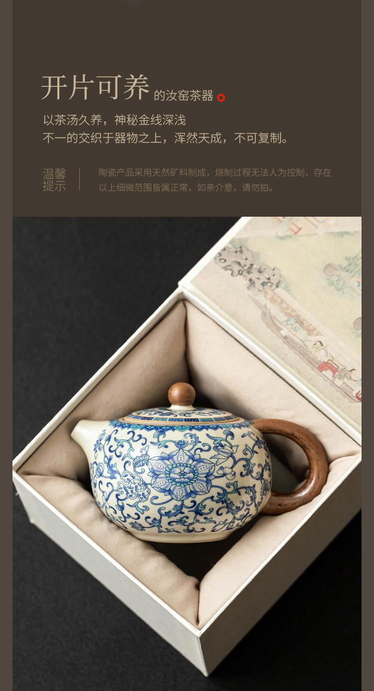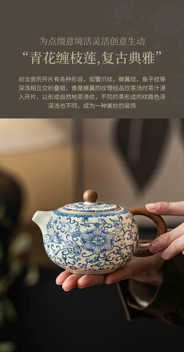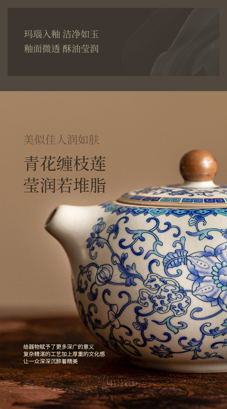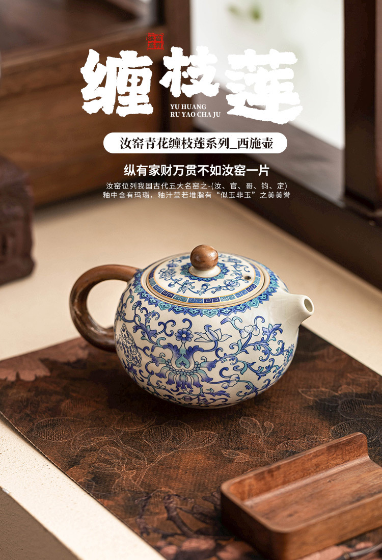 Ấm trà gốm sứ ấm trà ấm trà gia dụng Ru lò trắng xanh quấn cành sen Xi Shi bộ trà cao cấp kiểu Trung Quốc ấm trà cầm tay