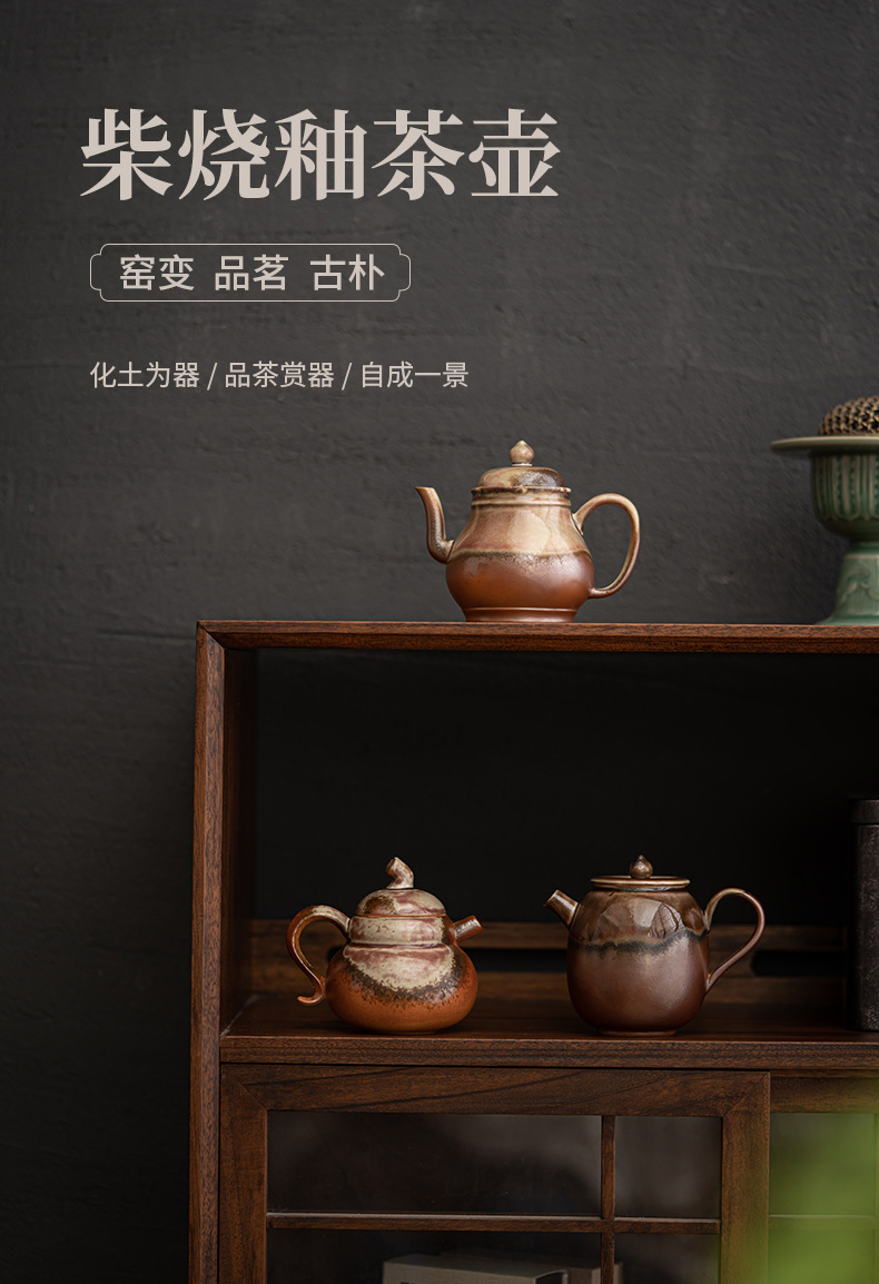 Ấm trà gốm sứ cổ điển Đốt Củi thủ công ấm pha trà đơn giản biến đổi lò kiểu Nhật ấm pha trà công phu gia dụng ấm đơn