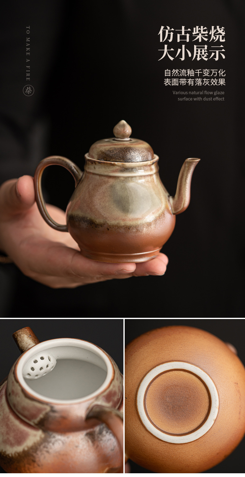 - Ấm trà gốm sứ cổ điển Đốt Củi thủ công ấm pha trà đơn giản biến đổi lò kiểu Nhật ấm pha trà công phu gia dụng ấm đơn