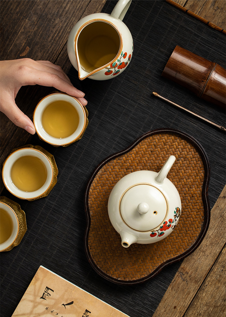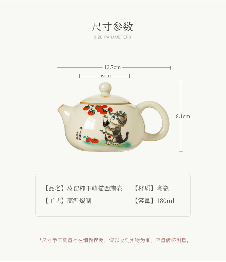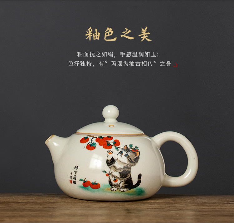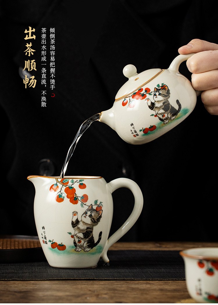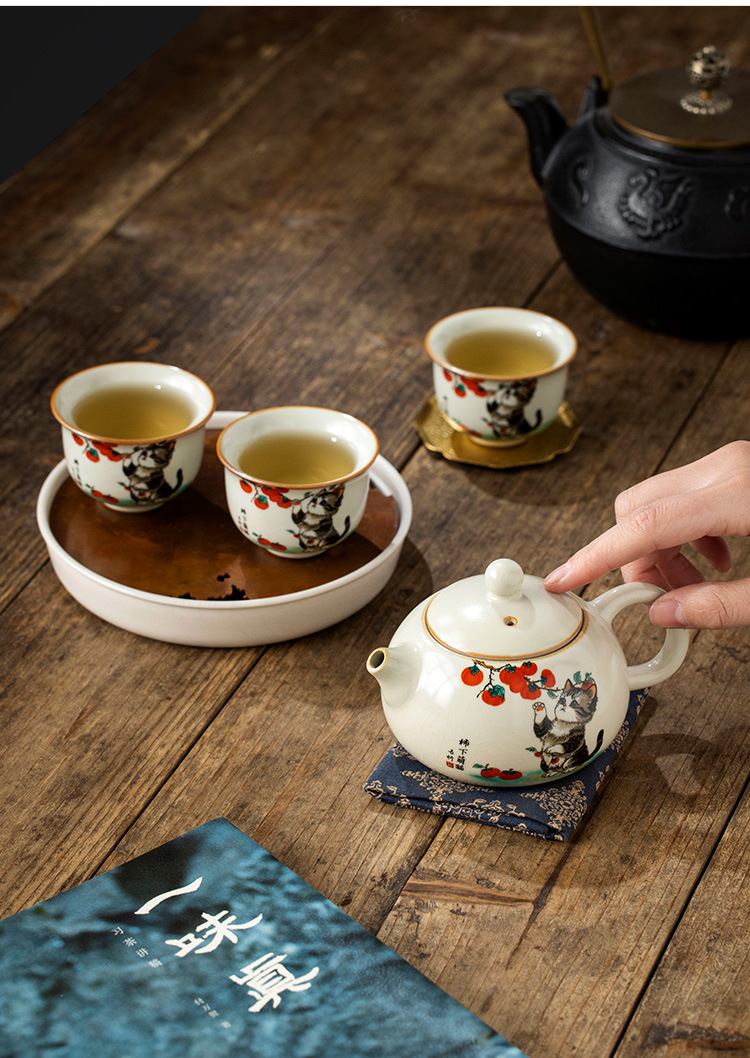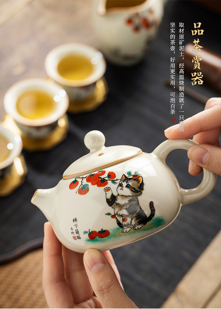 - Ấm trà gốm sứ kiểu Trung Quốc mới Ru Kiln Persimmon hình mèo dễ thương dành cho một người, kèm tách trà và bộ ấm chén dùng trong nhà.