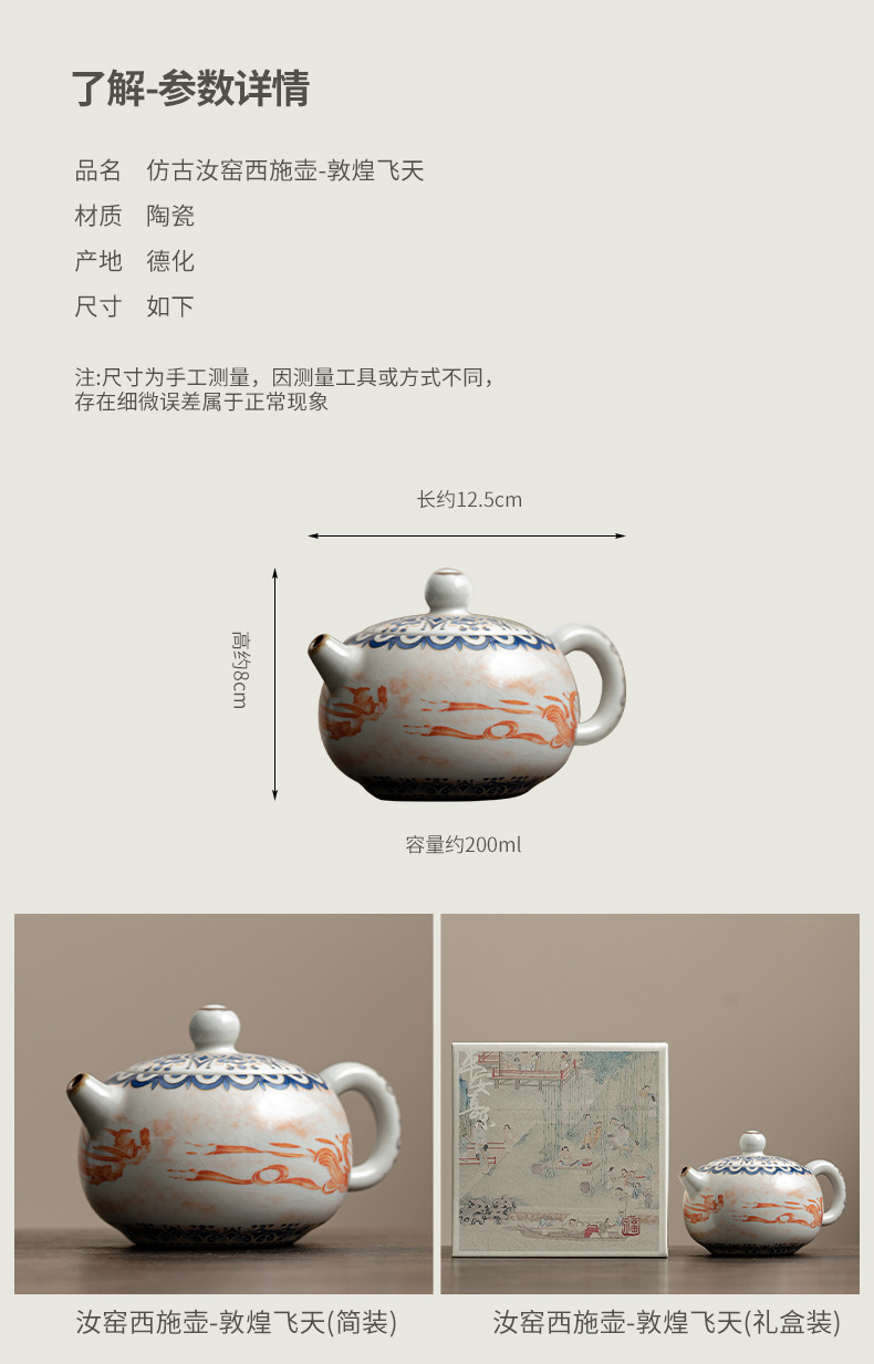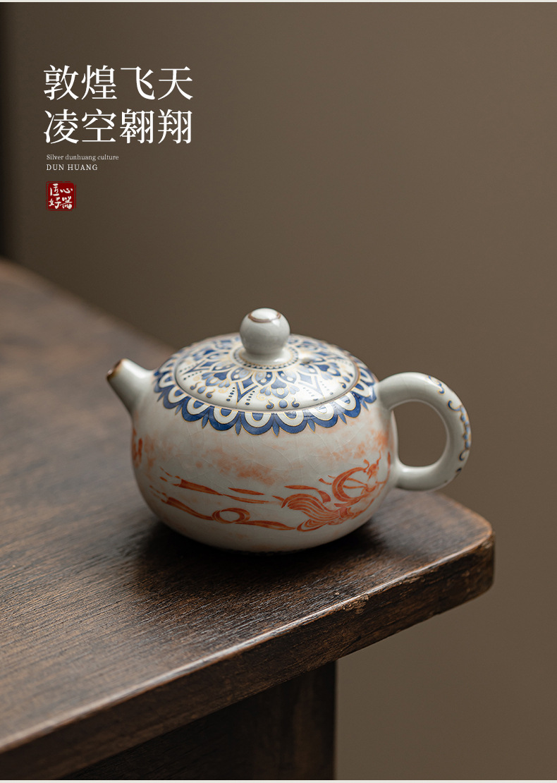 - Ấm trà gốm sứ lò nung Đôn Hoàng Feitian XiShi ấm trà gốm sứ lò nung Song Ru ấm trà đơn dung tích lớn
