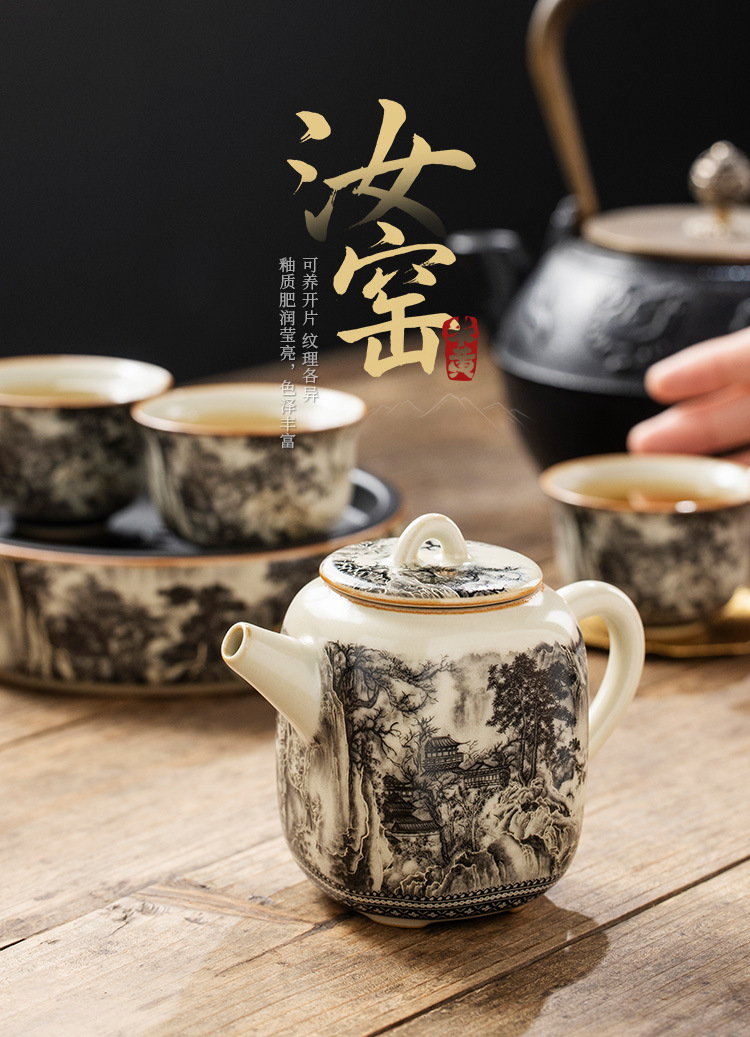 Ấm trà gốm sứ phong cảnh thủy Ruyao ấm trà gia dụng ấm trà mở tấm đơn ấm trà dụng cụ pha trà Kung Fu bán buôn