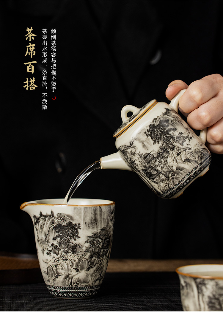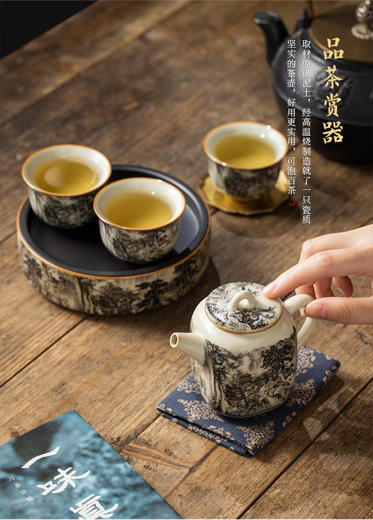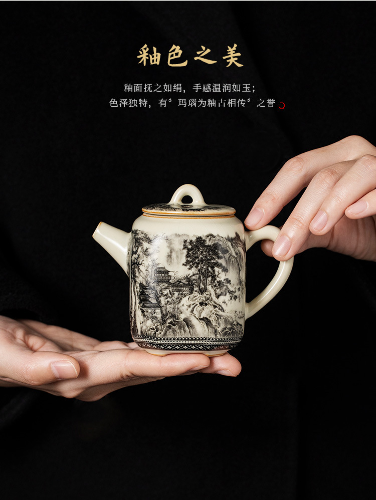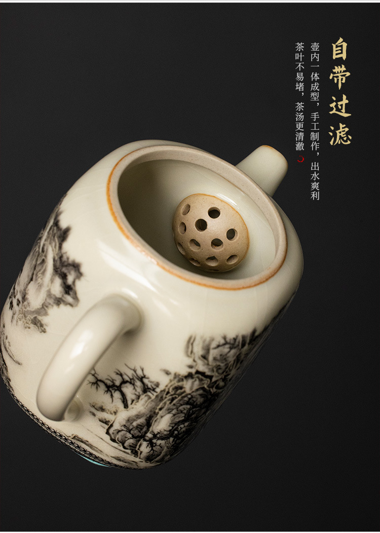 - Ấm trà gốm sứ phong cảnh thủy Ruyao ấm trà gia dụng ấm trà mở tấm đơn ấm trà dụng cụ pha trà Kung Fu bán buôn