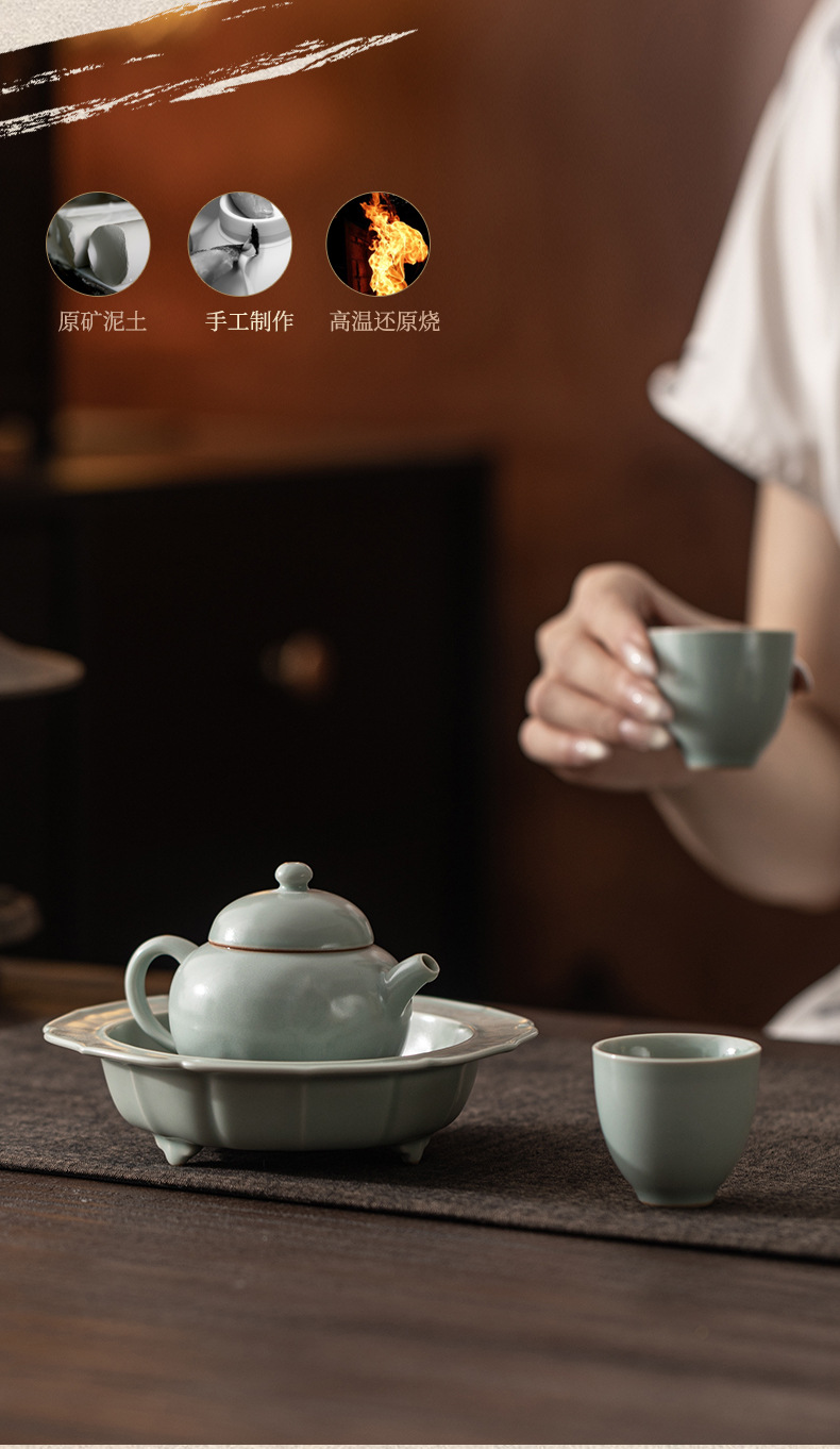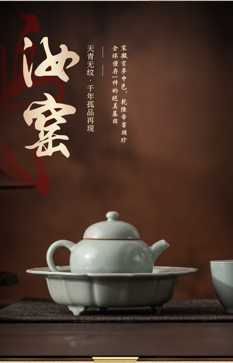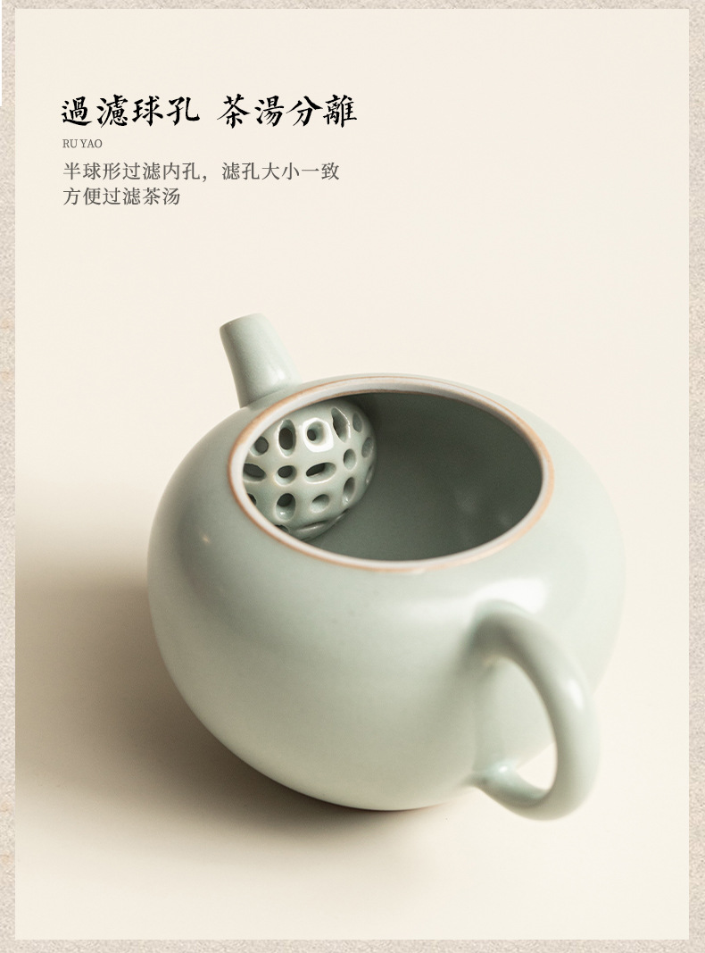 - Ấm trà gốm sứ thủ công Trung Quốc Sky Blue Ru Kiln Dream Round Pot, có lỗ lọc, kiểu dáng cầu kỳ