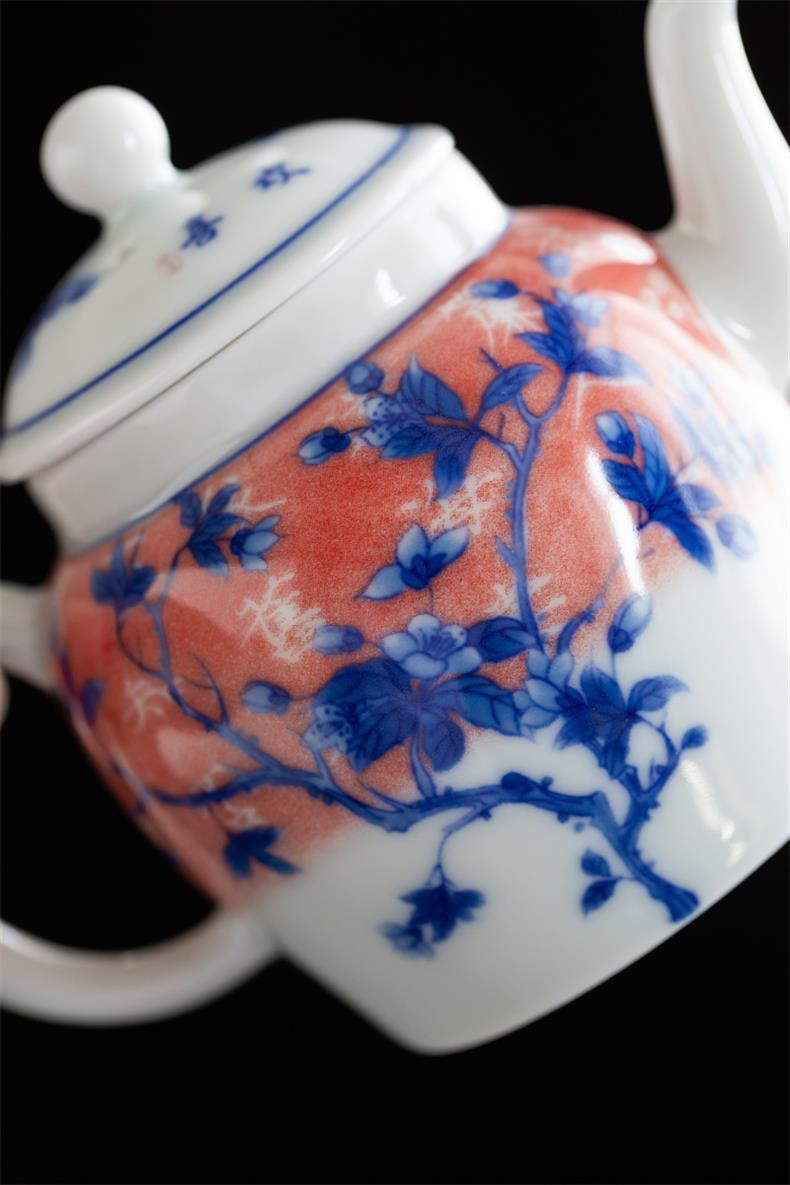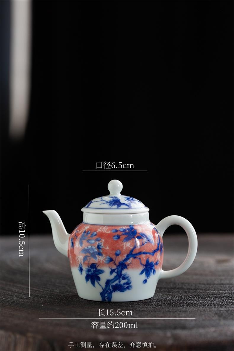 Ấm trà gốm sứ tráng men màu ấm trà lớn ấm trà gia dụng thủ công sứ trắng xanh cổ điển kiểu Trung Quốc