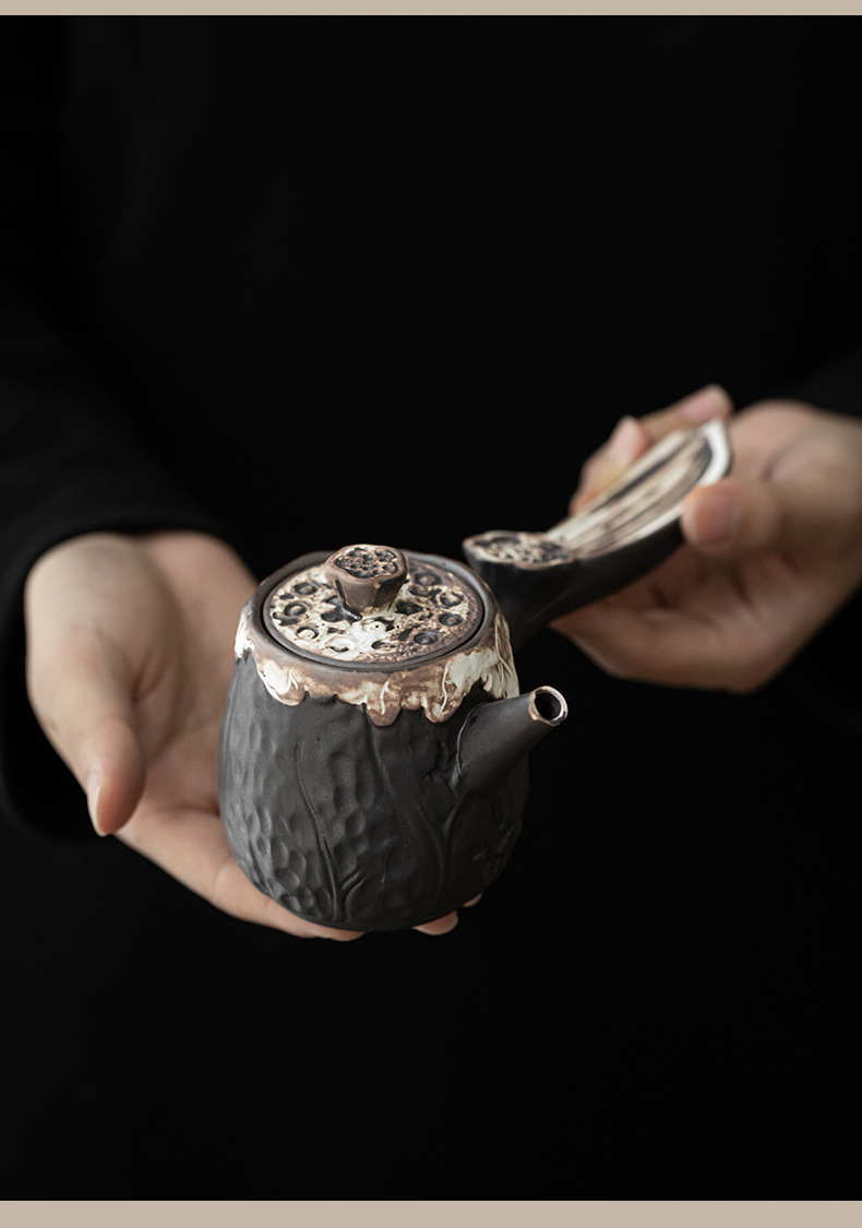 - Ấm trà gốm thô tay cầm bên hông ấm trà gốm sứ đơn ấm trà gốm Sứ dụng cụ pha trà tay cầm bên ấm trà