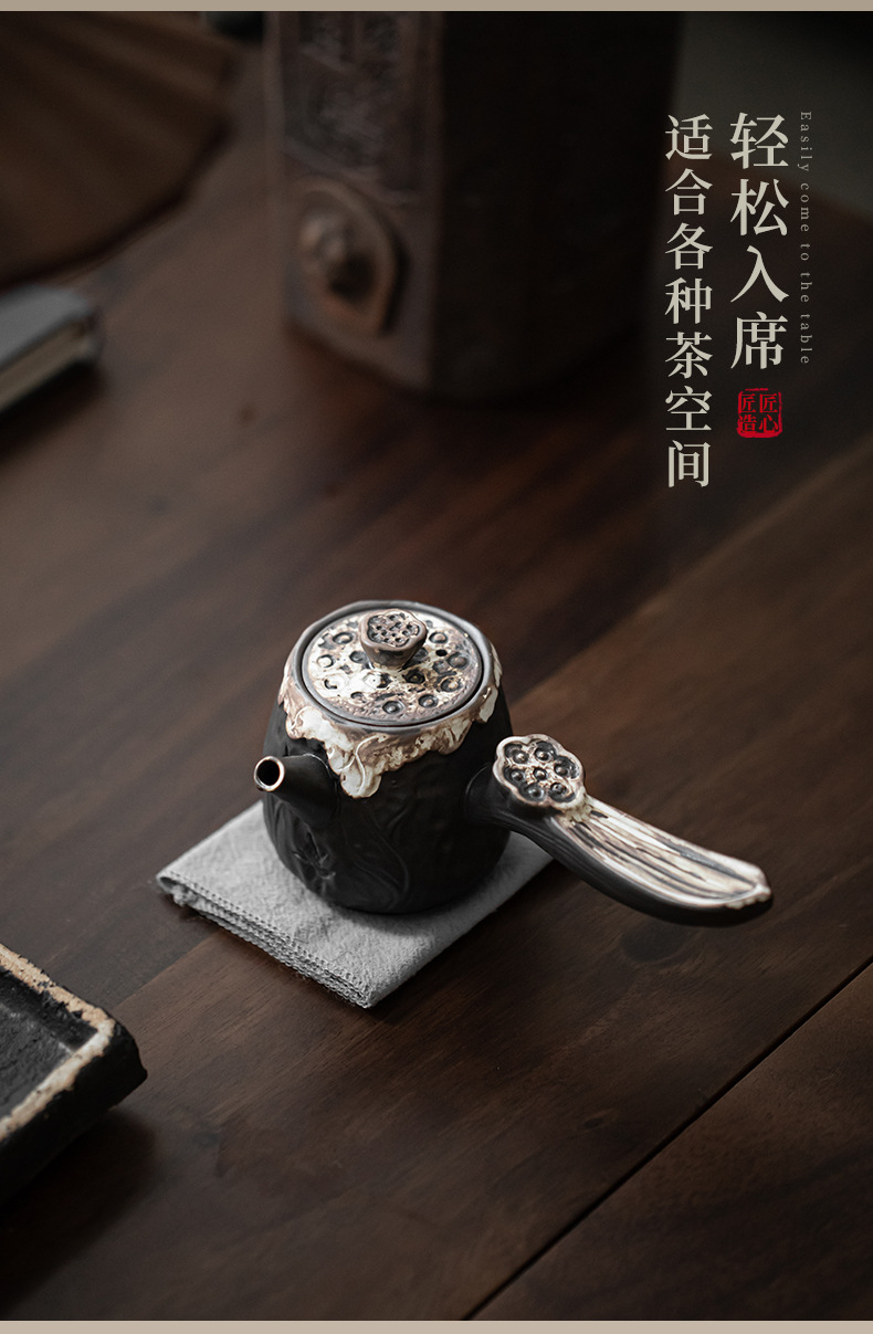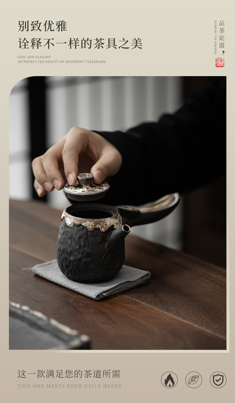 Ấm trà gốm thô tay cầm bên hông ấm trà gốm sứ đơn ấm trà gốm Sứ dụng cụ pha trà tay cầm bên ấm trà