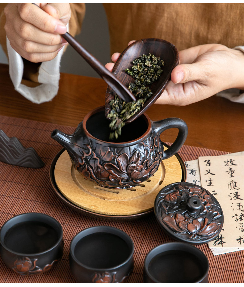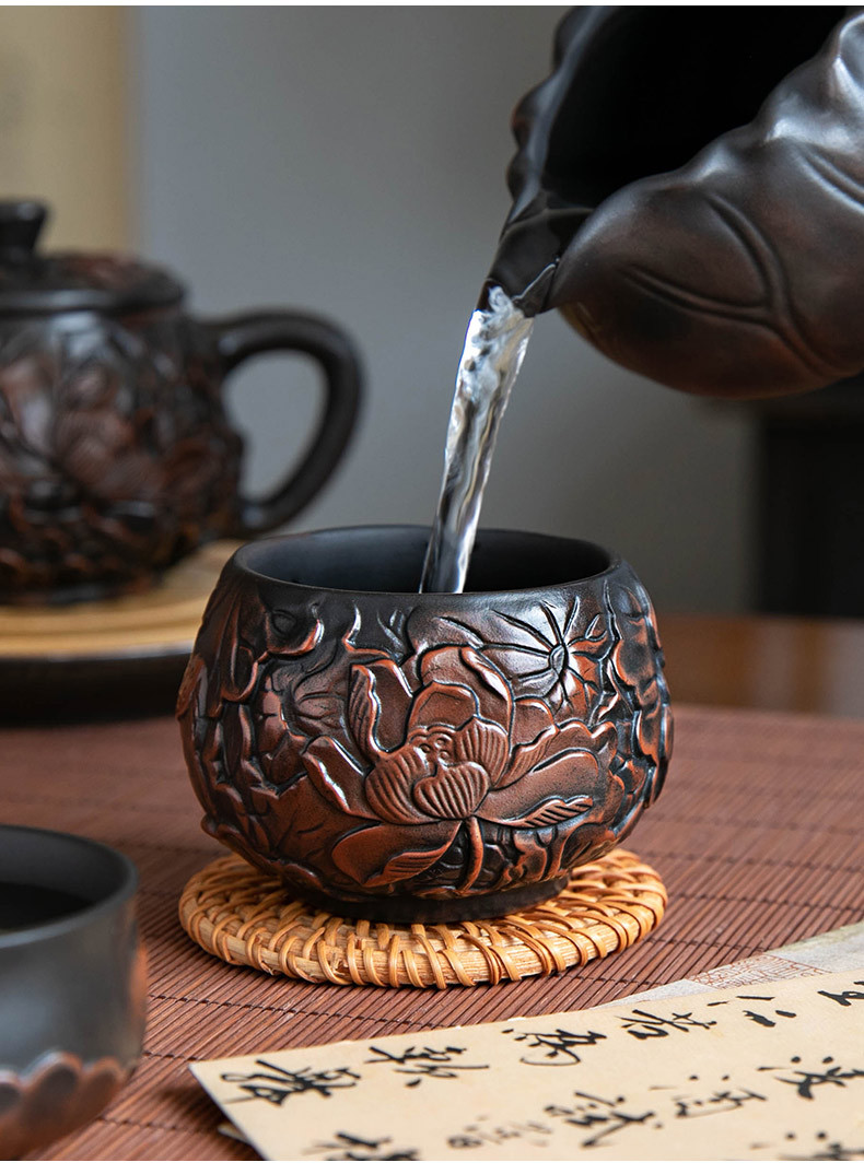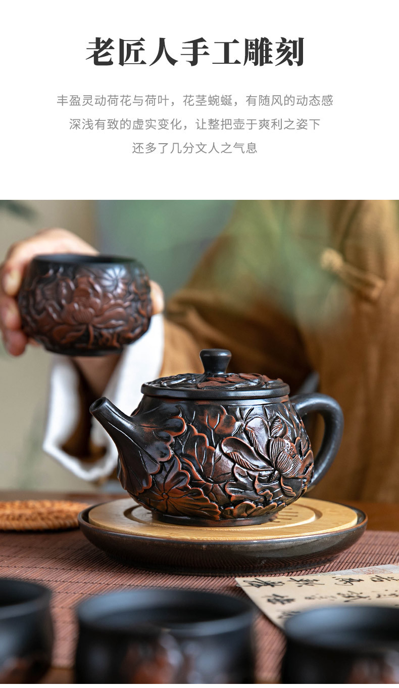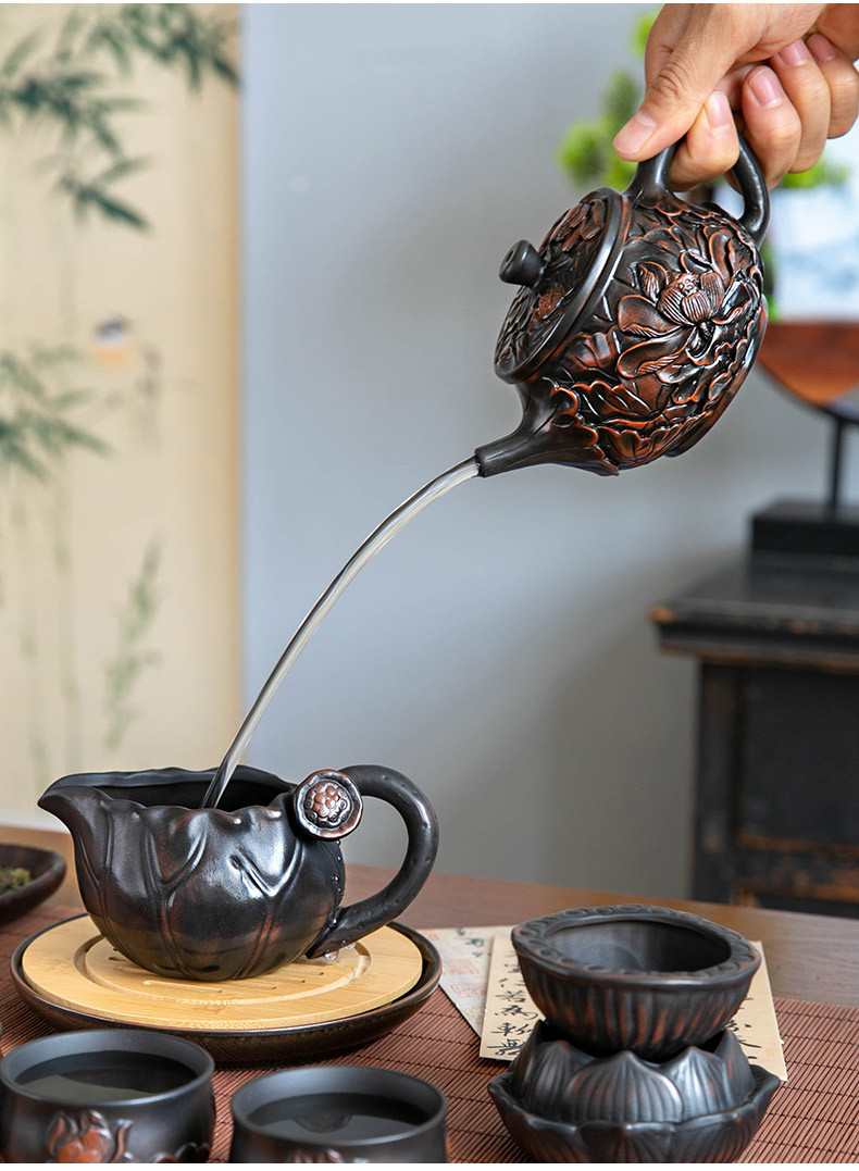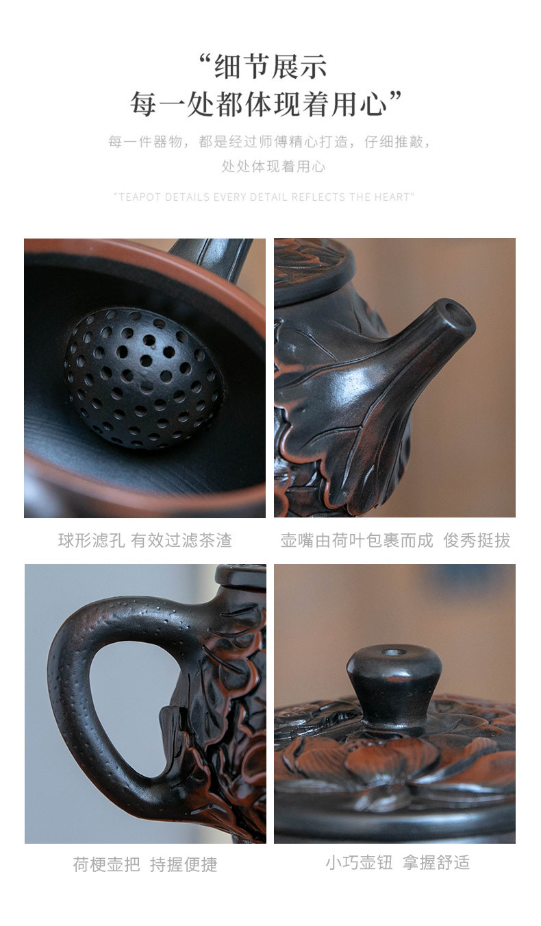 - Ấm trà gốm tím ấm trà hoa sen Vân Nam Jianshui bộ trà kung fu thủ công hoàn toàn ấm trà tử sa gia dụng ấm trà đơn ấm pha trà