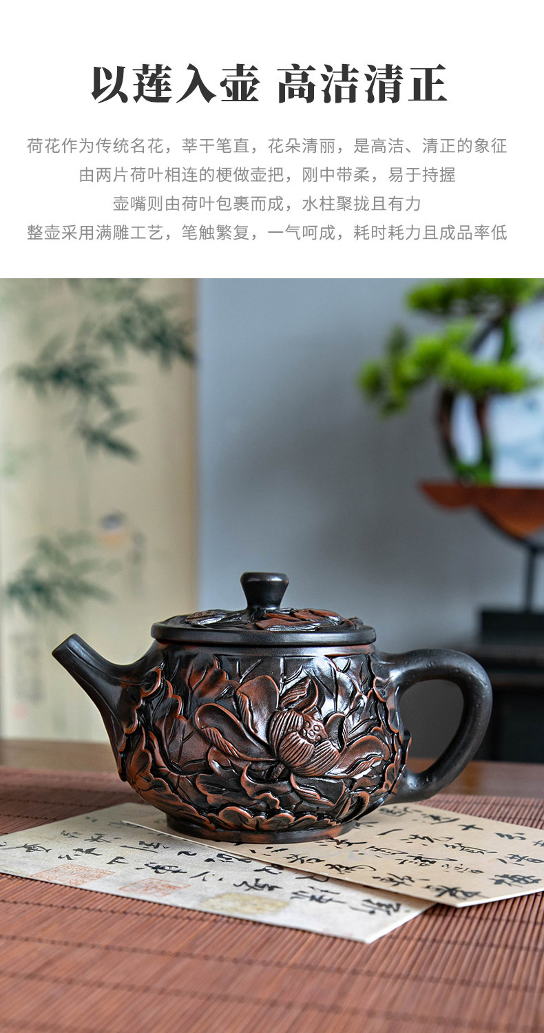 Ấm trà gốm tím ấm trà hoa sen Vân Nam Jianshui bộ trà kung fu thủ công hoàn toàn ấm trà tử sa gia dụng ấm trà đơn ấm pha trà